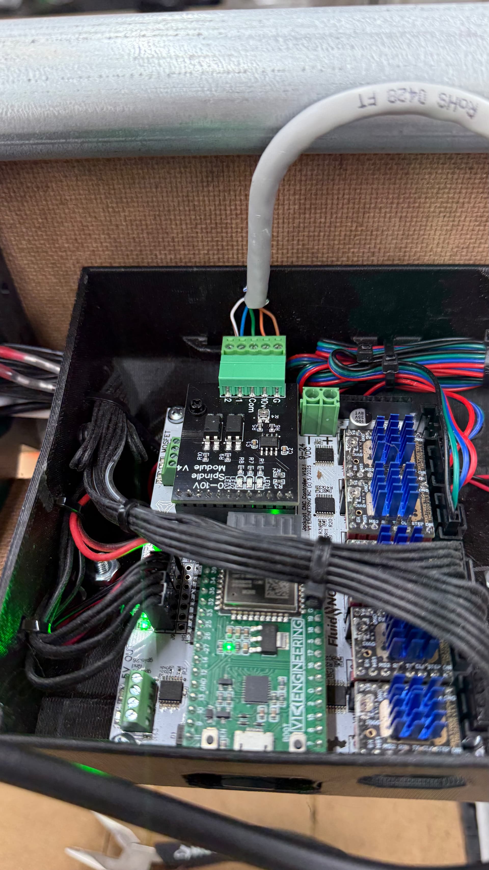 I recently finished my LR v4 build and things are great. I am using a spindle and it was working great when I have the VFD and Spindle controlled through the VFD.