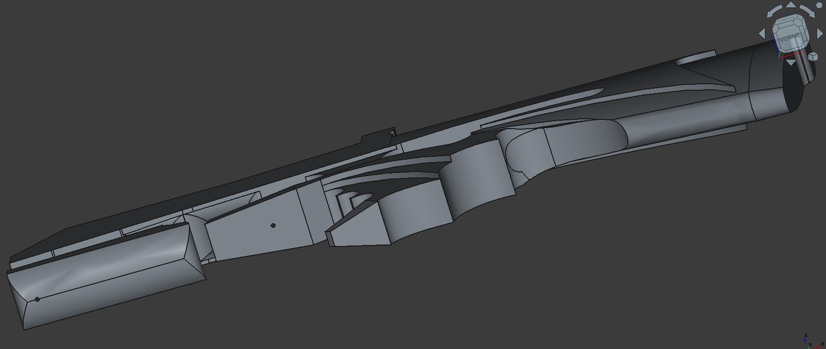 Although I like the “clean” and black stock, I would like to change a litte bit the design of the crossbow.
