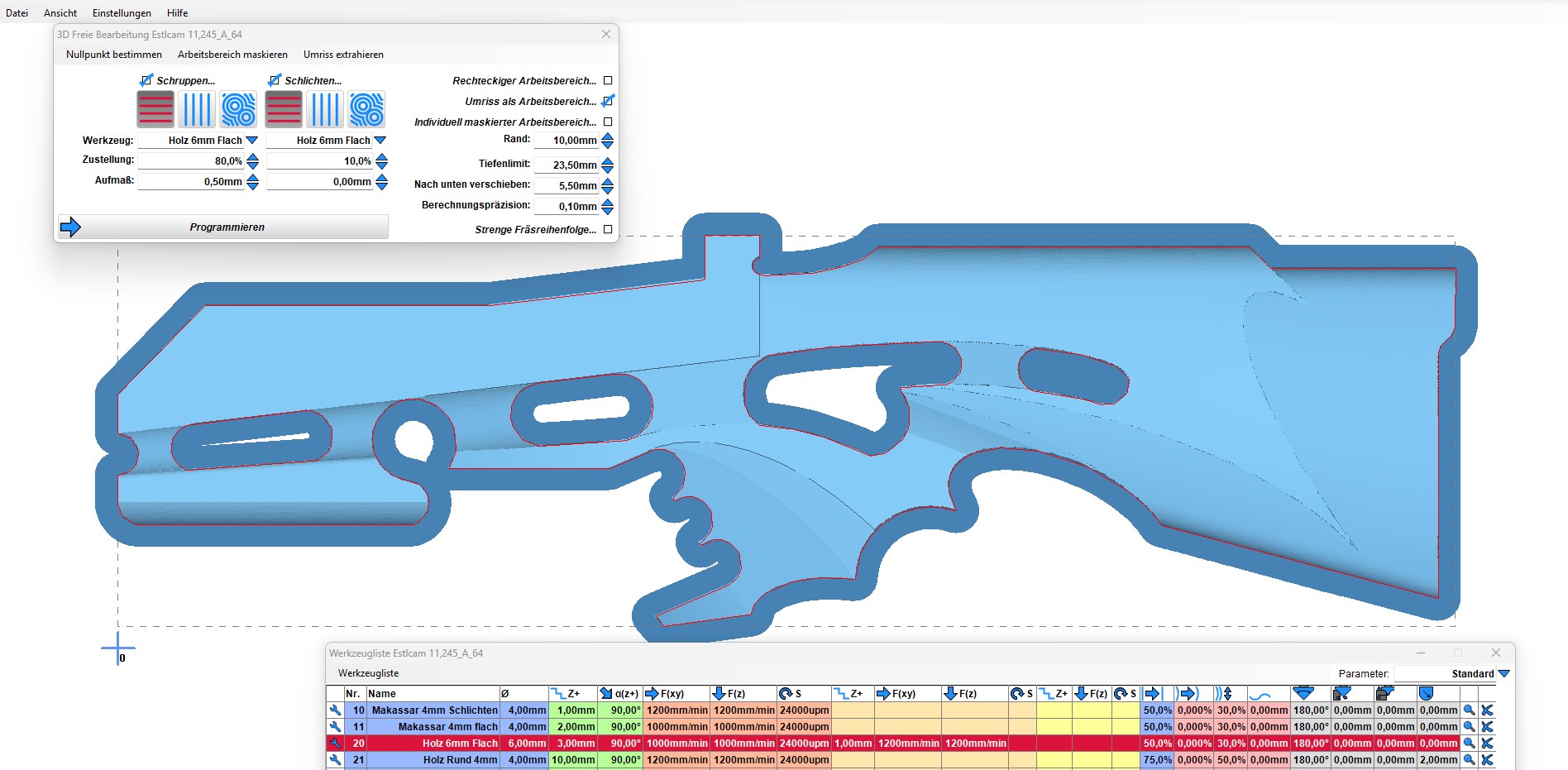 I had to run the milling in 4 steps, 2 for each side because the length of my milling bed is only usable for 50 cm.