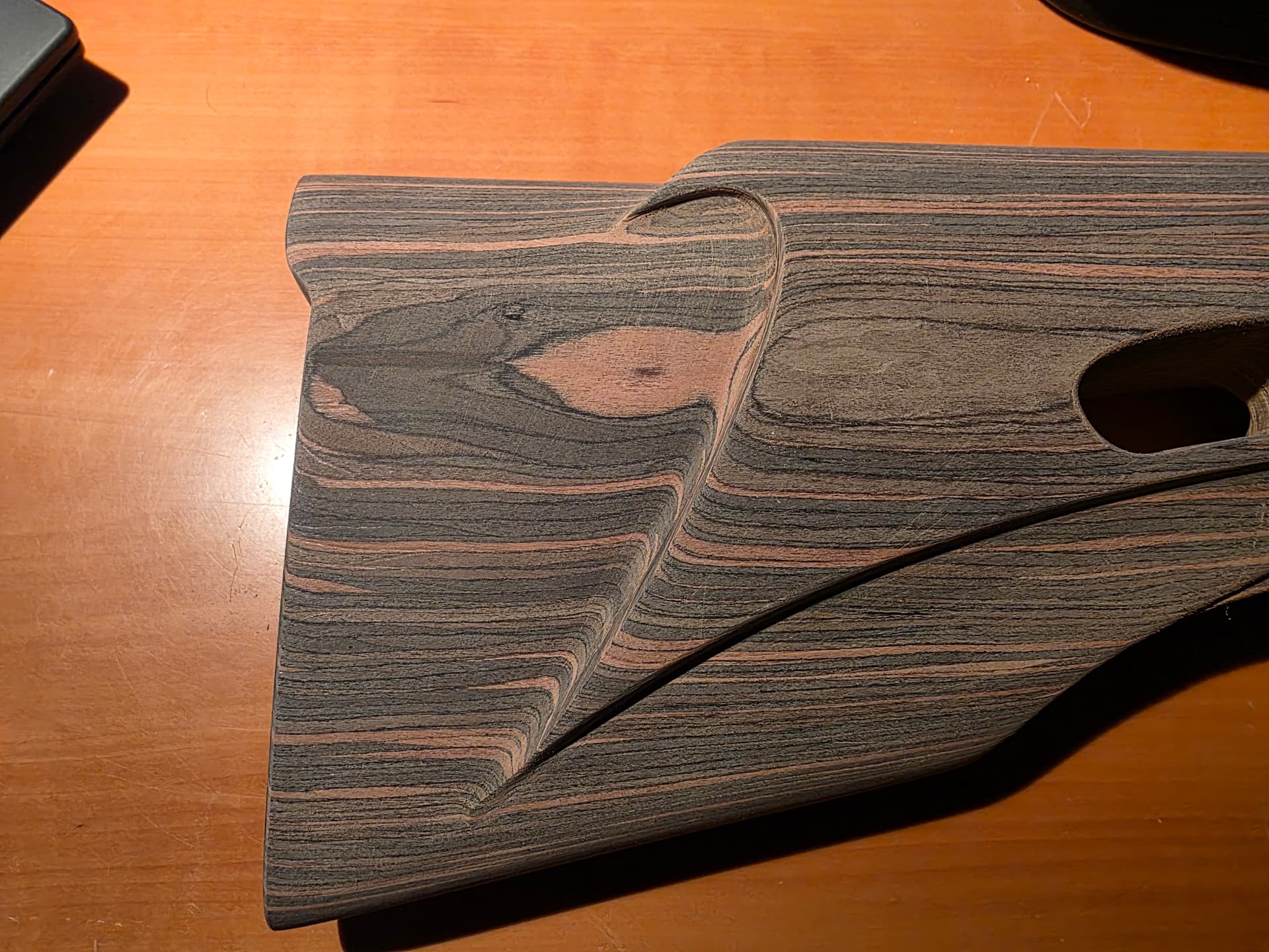 You can see that left and right sides are different from each other. The stock will be for right-hander use.