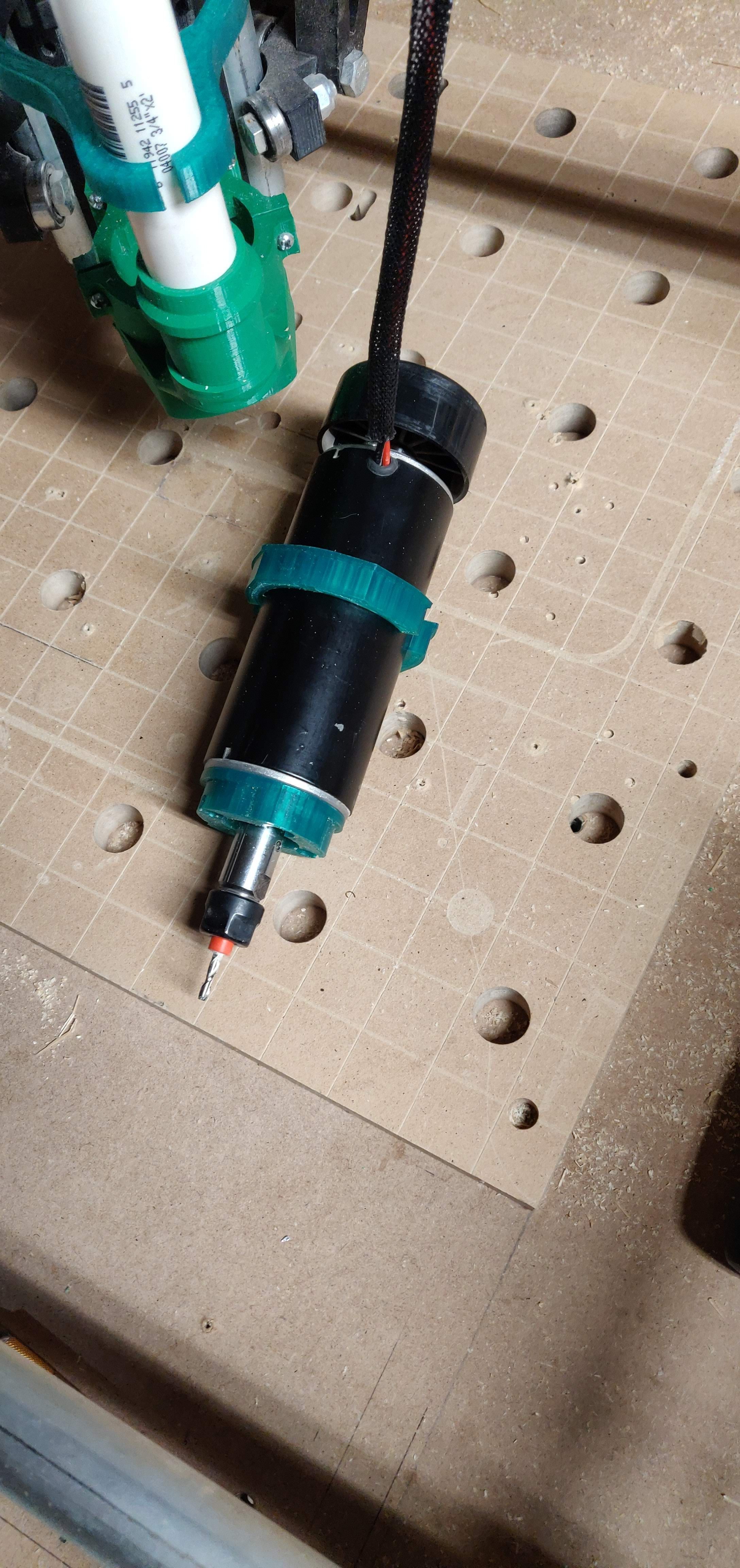 I often switch between using a 52mm spindle and the DW660 depending on what I am cutting and how much noise I want to make. I have used a number of different spindle mounts, but I dislike having change out all the mounting hardware. I wanted to enable my own laziness, so I designed an easy to print adapter so that you can securely hold the spindle using Ryan’s excellent DW660 mounts (should work with original or burly, but I haven’t tested with the burly yet). (https://www.thingiverse.com/thing:3371712)