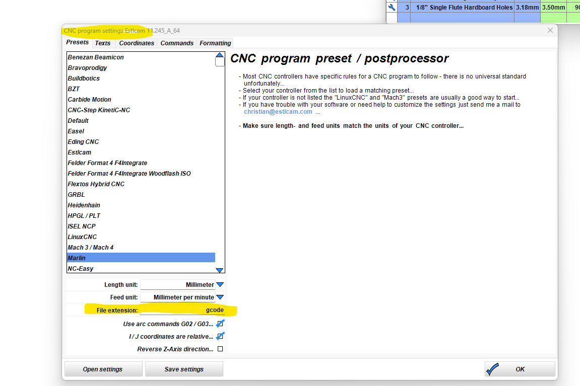 - EstlCam V11 (the version 1 use) has some special bugs. I don’t know if these bugs are solved in newer version. In my case, after creating the nc-file, I need to change the gcode manually to get the cnc running. Otherwise it will crash!