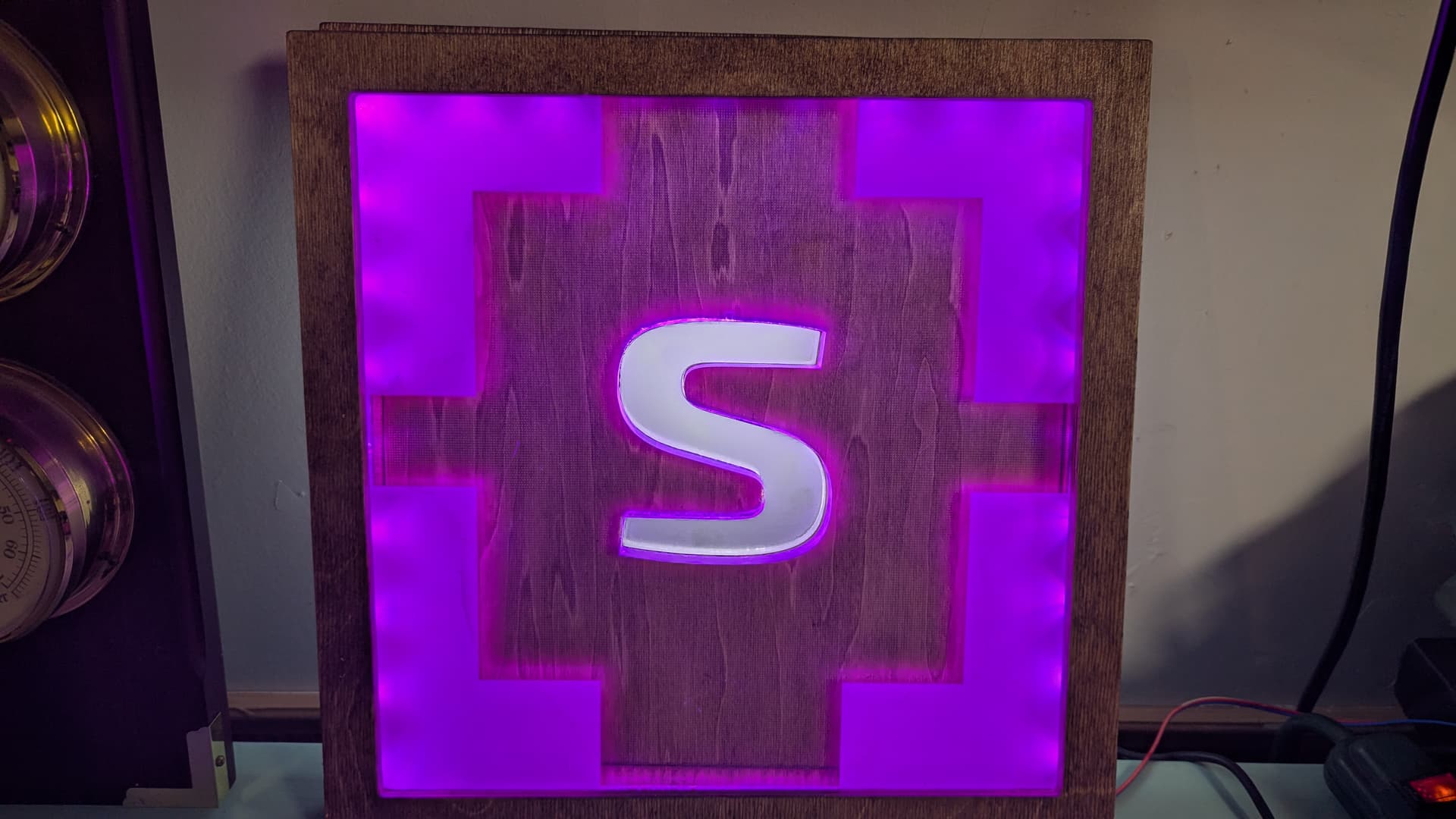 I’m going to put this in its own thread with the link here. It was built with good parts purchased for other projects repurposed for this one. The acrylic, ply, lights, and power supply were all bought a year or more ago for other projects and either not used or are remnants used in this build. The leds were a remnant, the power supply was my bench tester, the neon was for Halloween that didnt get built. The 1/2" plywood was a leftover scrap as was the 1/4" plywood backer. If that neon is a disqualifier, you can decide. Still working on the wall mount mechanism 3d printed design. It is a logo/avatar sign for one of my kids.