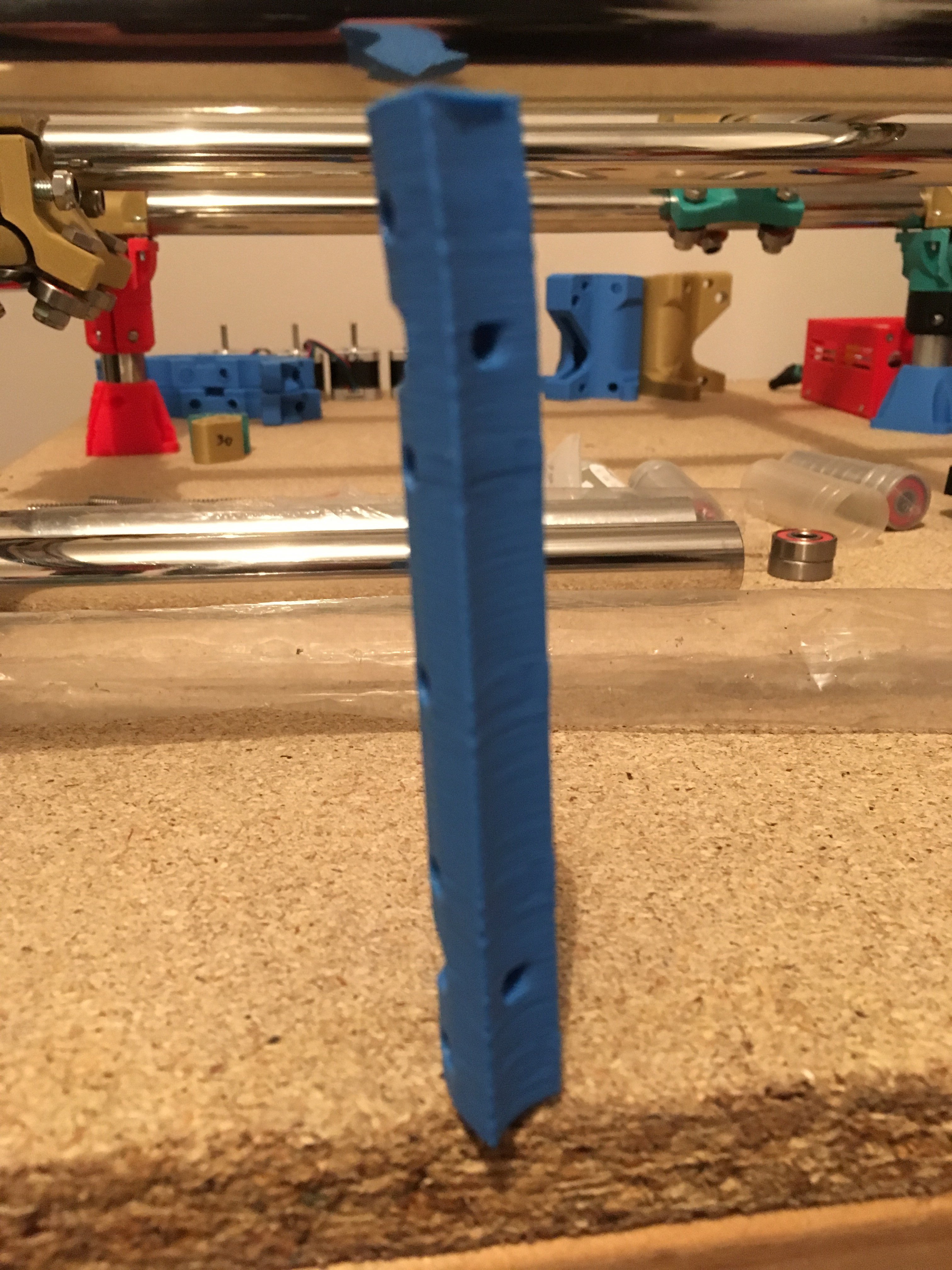 The biggest problem is that I can’t get the tool mount to print completely straight (slightly bent at the bottom) - tried twice on the prusa - the second time much slower on smaller later height - but same result - not sure what’s making it lean over. Will try putting it together and see if it affects things - if so will try reprinting on the Flashforge which only moves the bed in the z direction to see if that helps - or maybe redesign it so it can be printed flat without loads of supports.