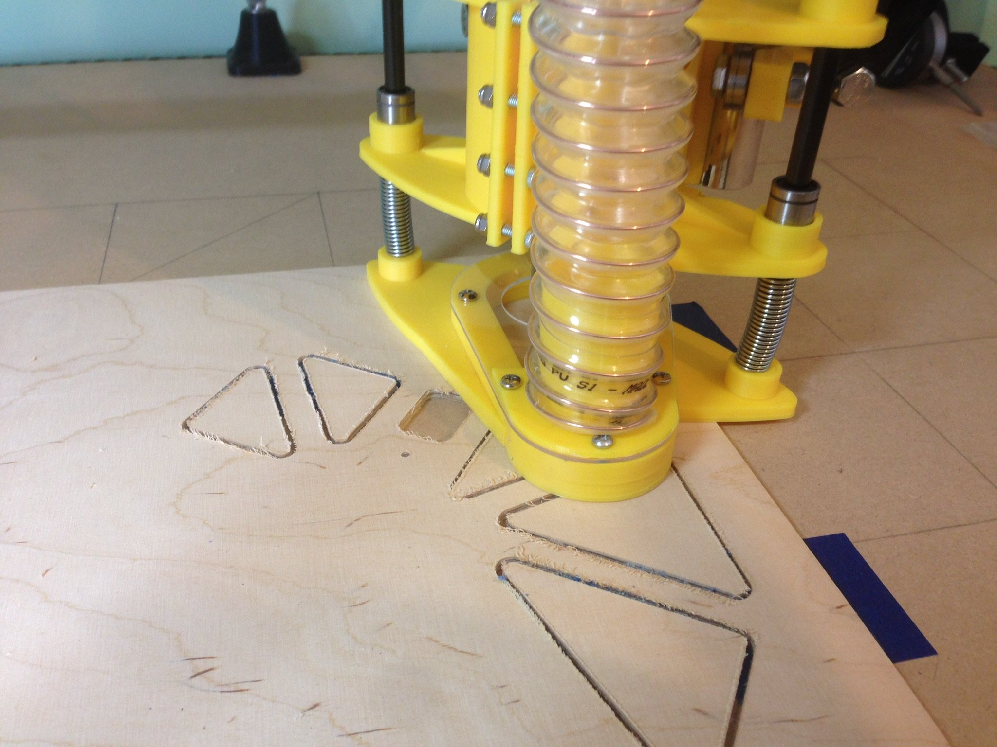 Suction shoe looks excellent - will have to sort out an appropriate vacuum and print something similar myself. Did you cut the transparent material on the MPCNC?