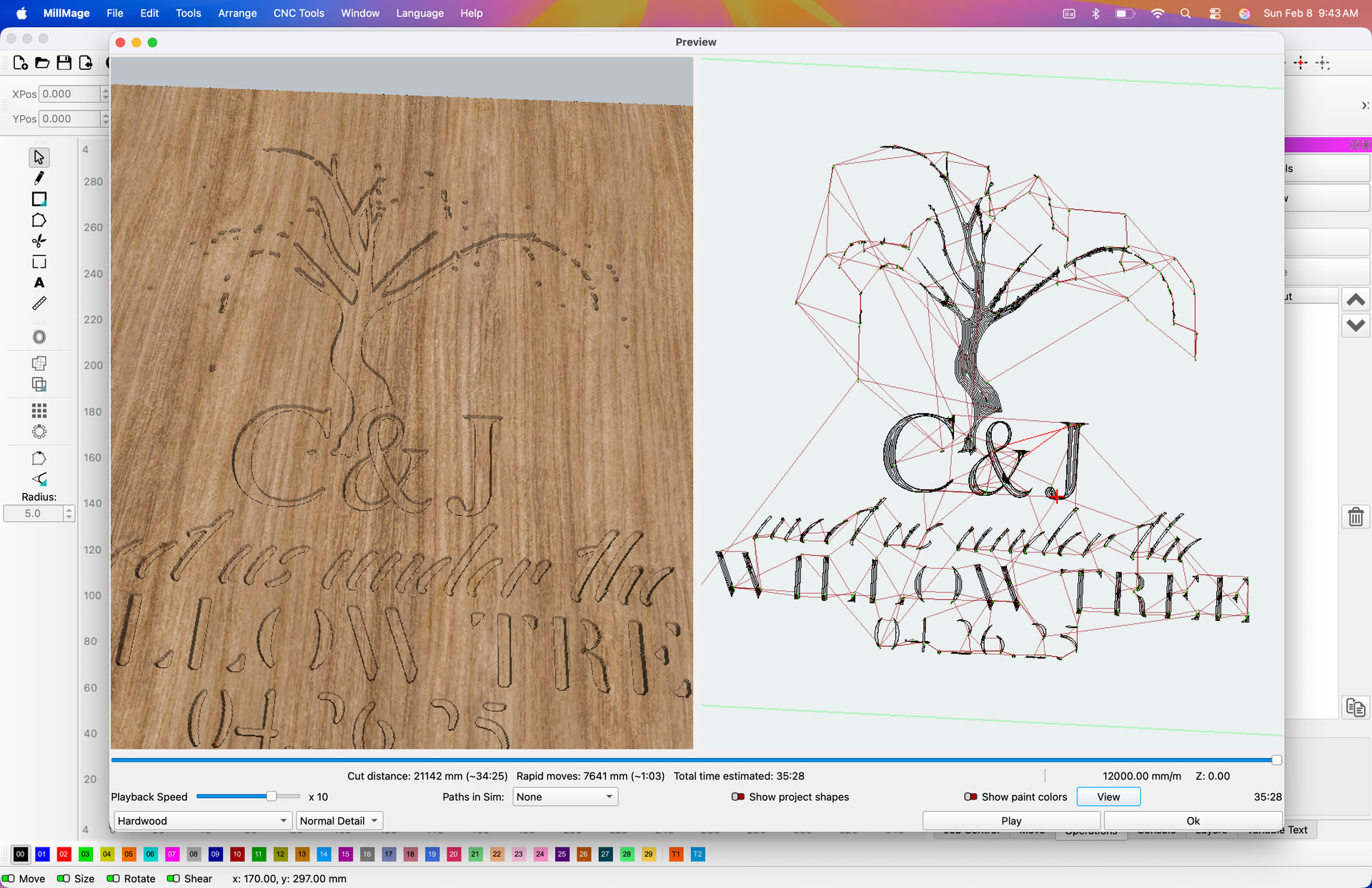 other thing ive noticed is tool size needs to be exact , manufacture spec said tool was 6mm so i put that in tool specs , after few cuts things were off , exact tool size was 5.96 which made huge difference to preview and cuts , its prob 101 to do that for every tool , was basically just being lazy