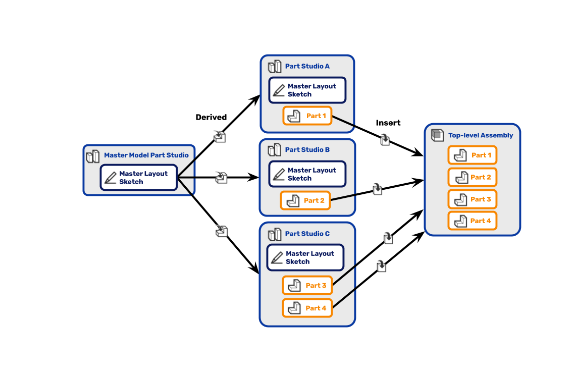 It is super tough. Each project is kinda different. If a master part or sketch will work you should always use it. Sub assemblies really help things. I am still trying to work out the best way to use onshape.