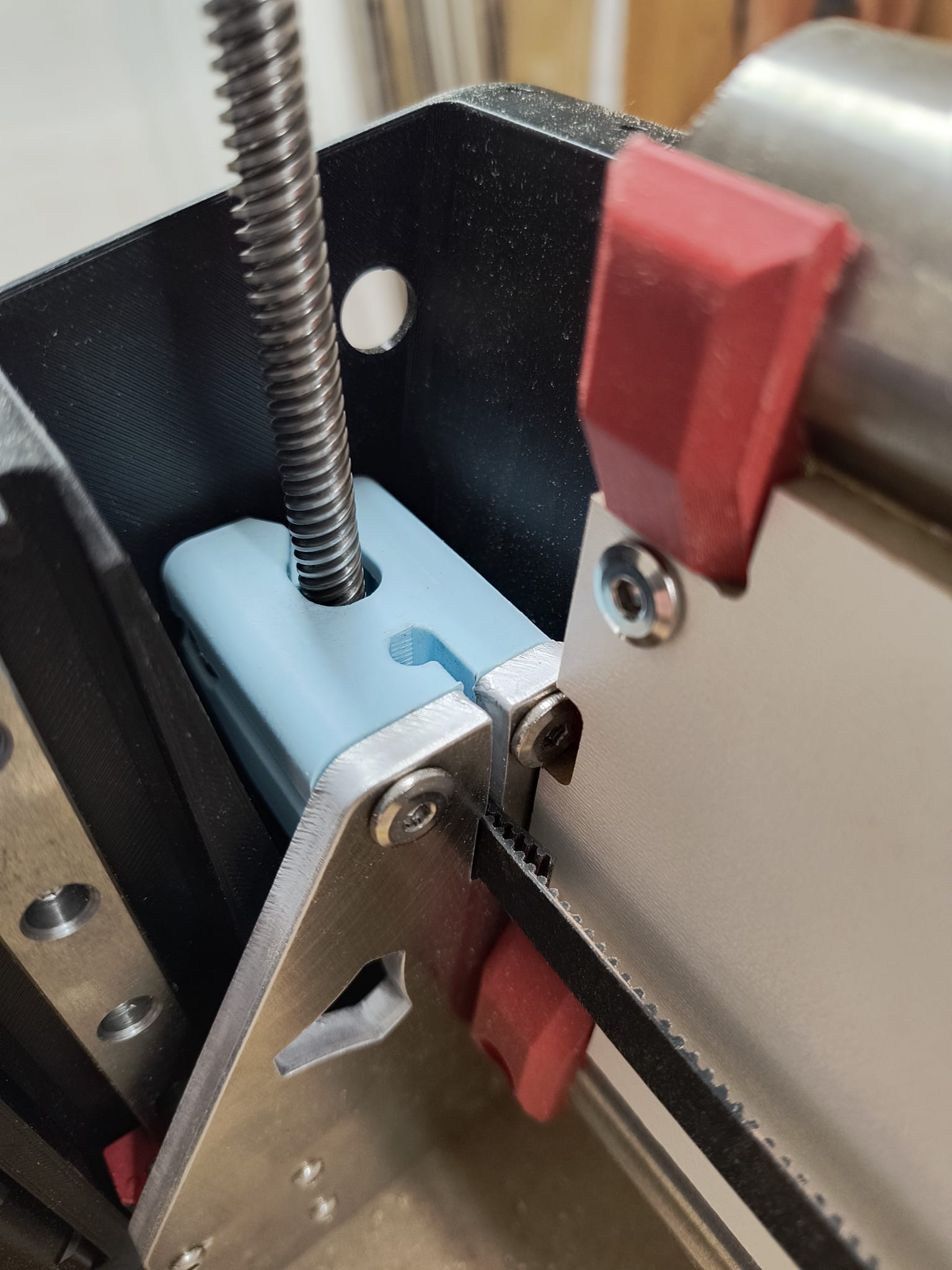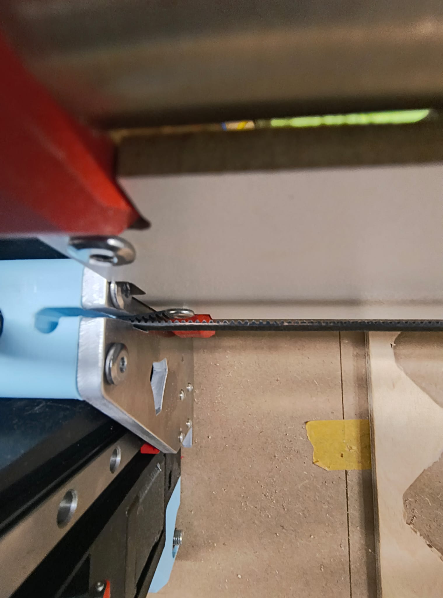 yeaaah mine was about that tight aswell. i measured everything, which is hard, when all assembled. slot is ~2.1-2,2mm and the stacked belt 2,5mm. when the parts a slightly misaligned that leaves you with a 2mm gap which is really tight.