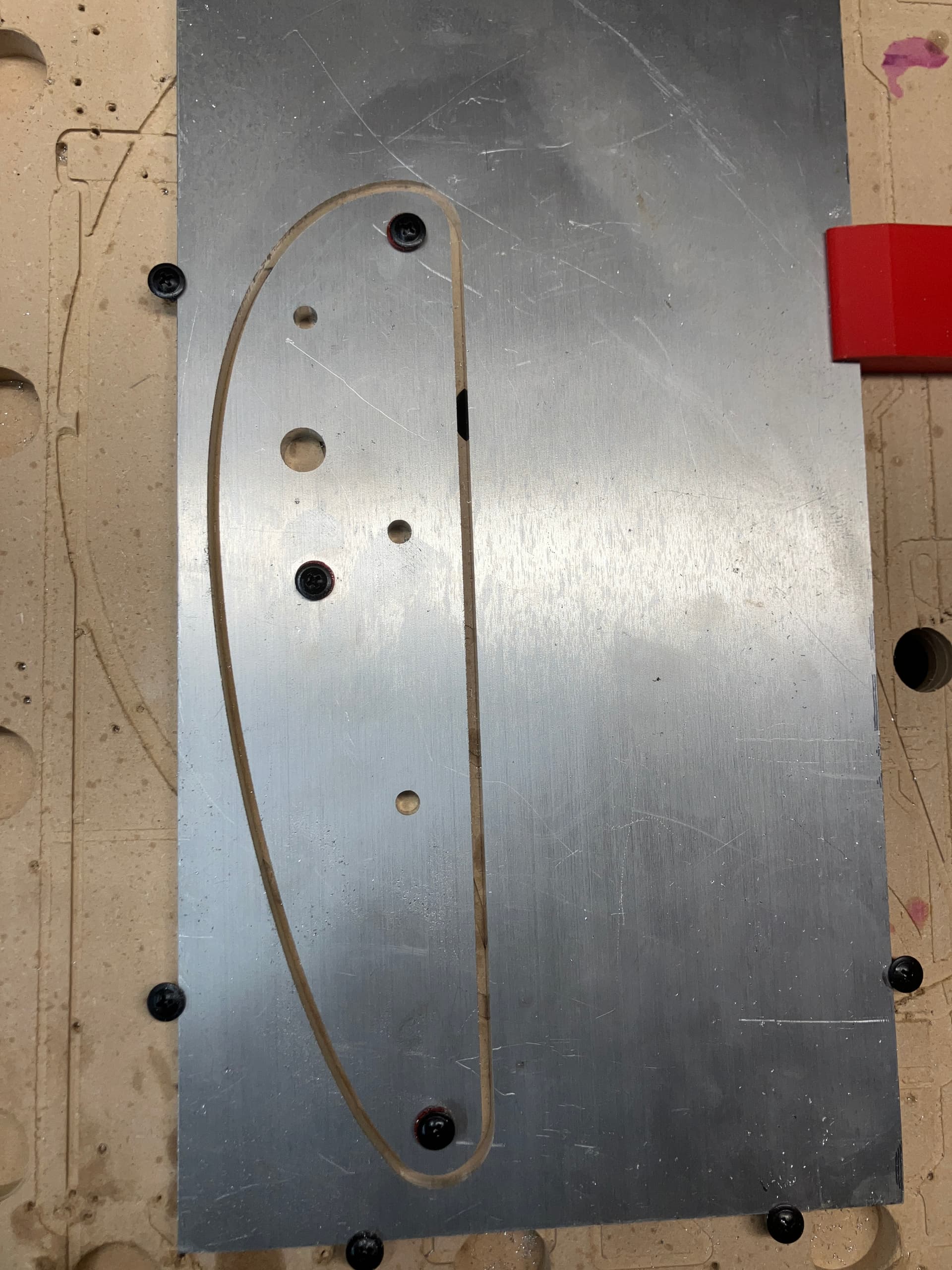 I first bored the holes then added screws to hold down the inner section, then milled the profile. The total job took just under 30 minutes. It worked really well and I think I could increase the depth of cut or feed rate a fair amount. I think I’ll test 0.02" and 0.03" depth of cut since the cutting force was only about 2lbs/0.9kg. And I have it in my head 8-10lbs is possible for the LR4?