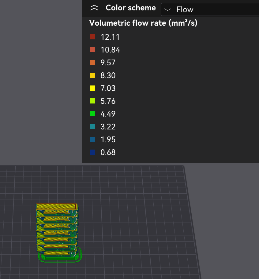 In Orca, after slicing, you can select “Flow” and the colors will represent the flow rate. You can set the upper limit in the filament settings “Maximum volumetric speed”