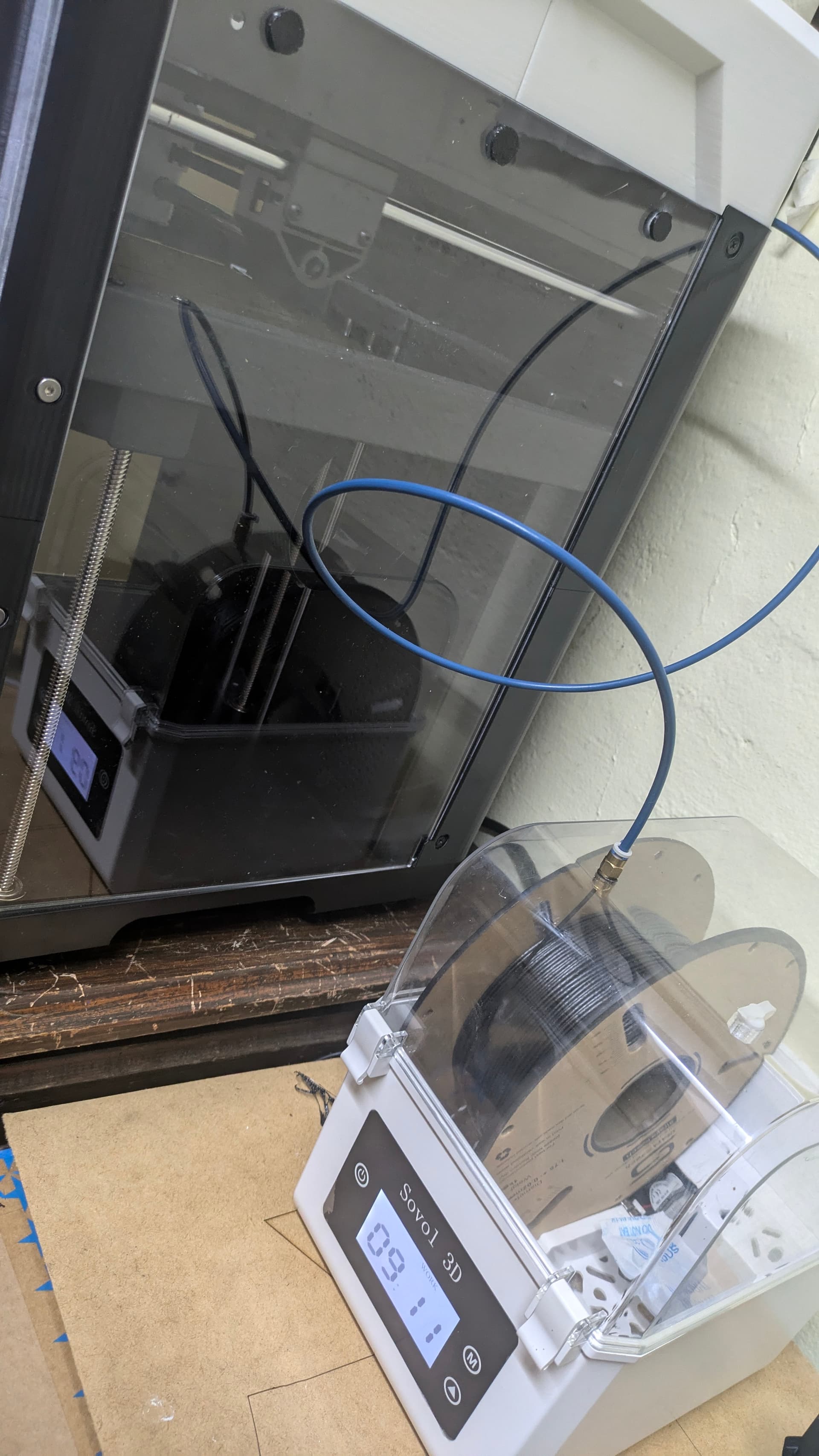 Also, I remixed a new minimal version of the enclosure, that prints in less time, uses less plastic, and in my opinion is better in substantial ways. I now have three of the AD5M printers, and two have the original DIY enclosure, whereas the third has my new remix of the minimal enclosure, and it’s just nice. It makes any maintenance work easier because the top is so much easier to remove (no wiring ribbon cable threaded through a slit to a relocated touchscreen, and no camera cable threaded through a hole to a relocated touchscreen). It’s better because if you have/get the AD5M camera (which is for the Pro version but can be bought and installed on the non-pro version - and its video feed can be displayed remotely in either of the web-based UI choices available if you do the unofficial Klipper mod) it does not need to have a modified mount to get its wire cable to be long enough to reach a higher position of a relocated touchscreen, and better because the touch screen does not have to be moved – it gets to stay in the stock position, which is nicer in all ways. My new remix of the minimal enclosure made several improvements on the great work from the person whose work I based mine on, and it will have the new side mounted spool holder with it. Watch my account on Printables for this soon.https://www.printables.com/@design8studio