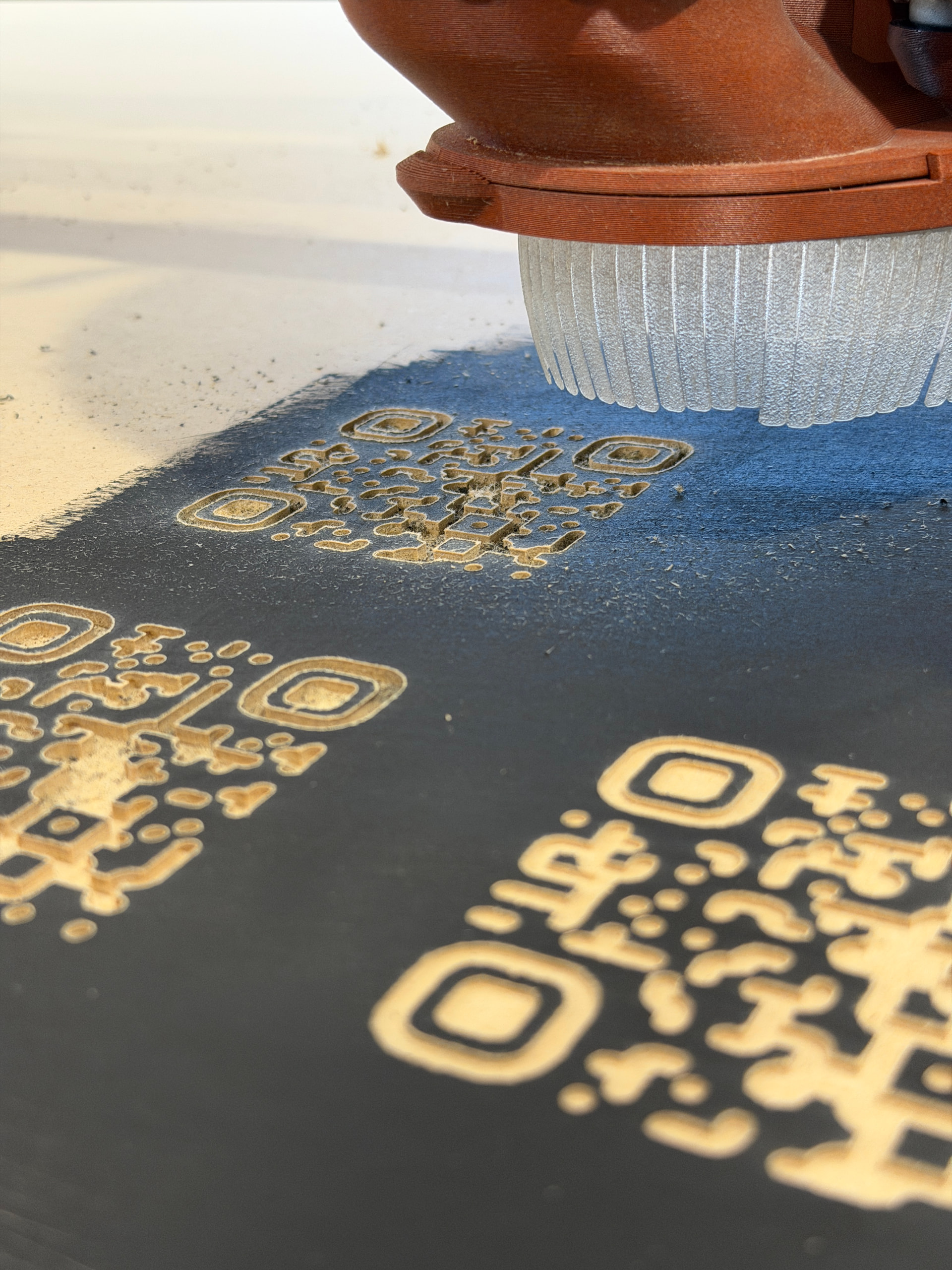 My objective is to prefinish some wood (say, airbrushing TransFast dyes on Maple) and then CNC a QR code out of it.