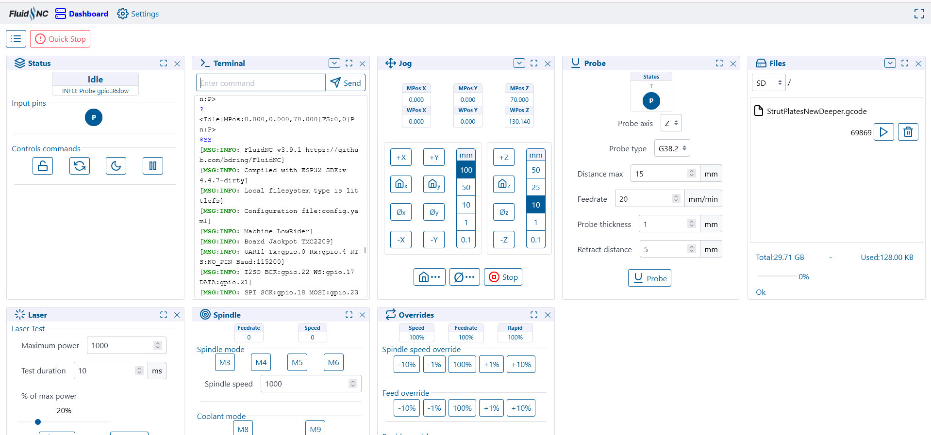 My question is, how does the system know what size it is? For example 4x4 or 4x8? I don’t see an option within FluidNC to test/run the whole board (4/8 in this case) and how do zero?? (not sure if I’m asking this correctly) the Z using the included tool