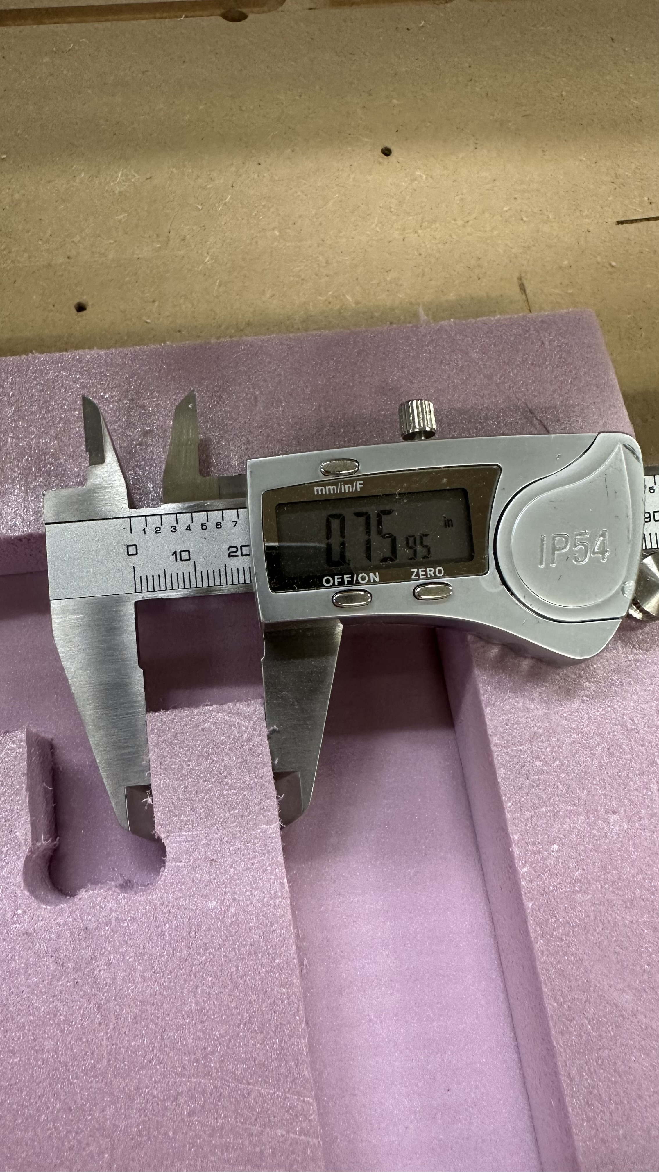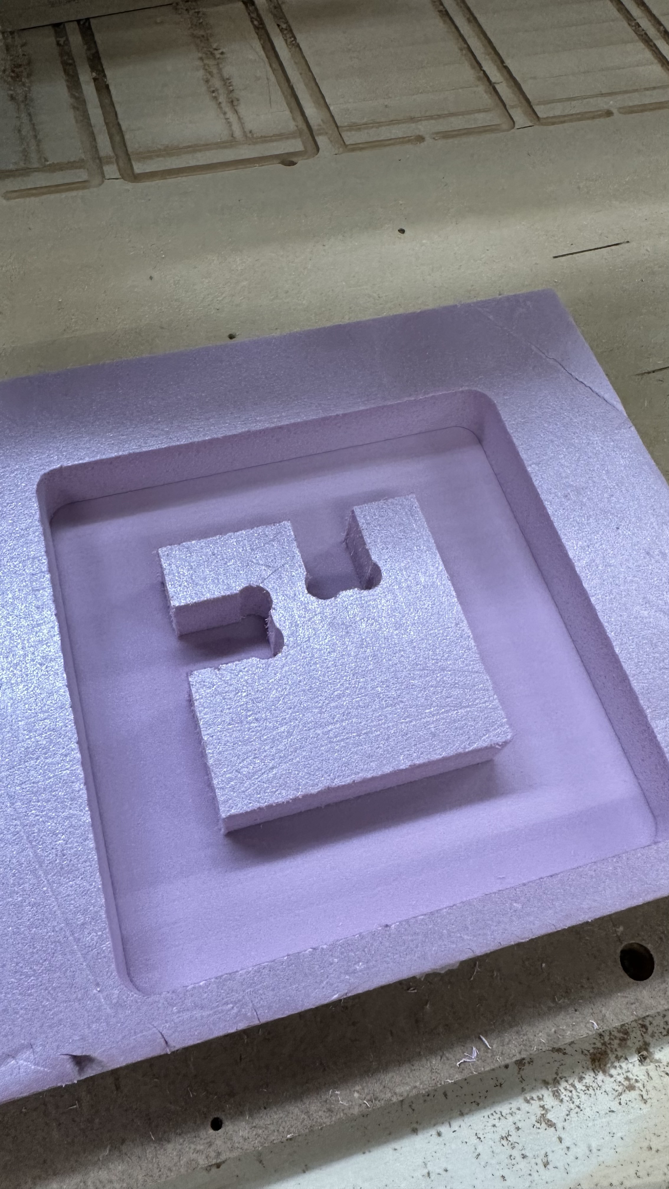Then I ran another test in 1.5" extruded foam, same feeds and speeds but altered the program slightly to do an “island” cut around the test drawing. Same 0.05" finishing pass and all other parameters the same.