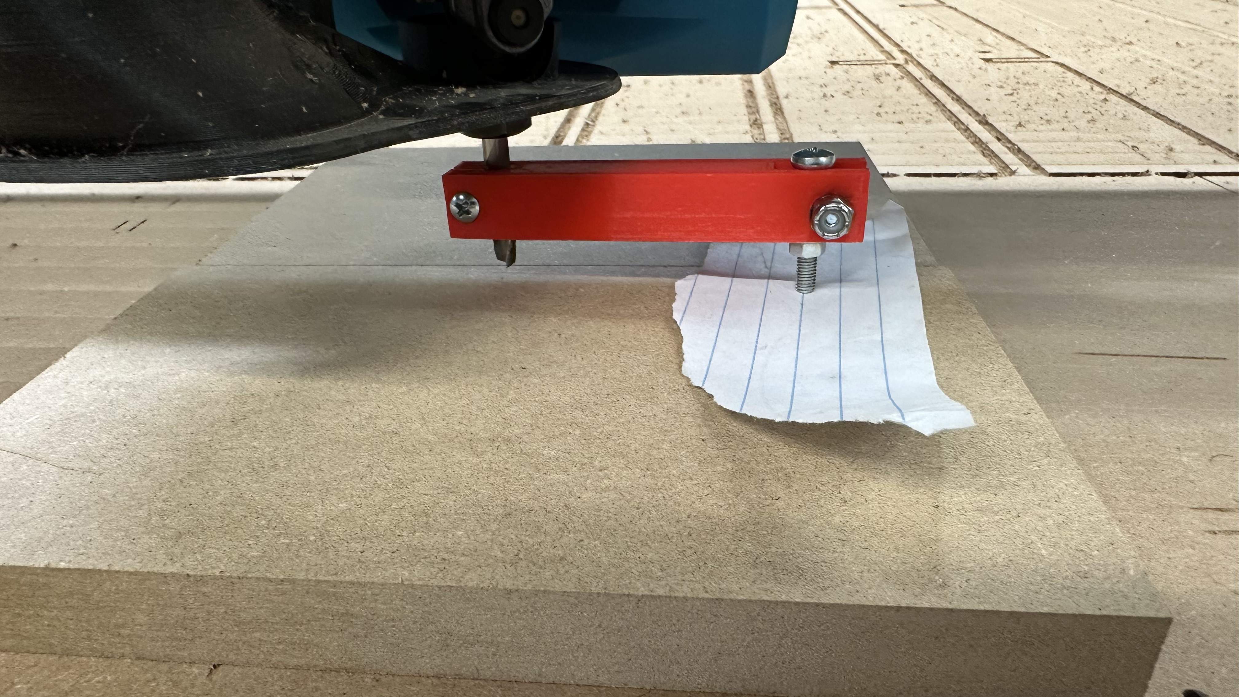 Ok. So I surfaced a section of my spoilboard, and measured the tram distance, using a piece of paper under the screw (kind of like I’d do with a 3D printer to calibrate the bed) and looking for where it grabs the paper.