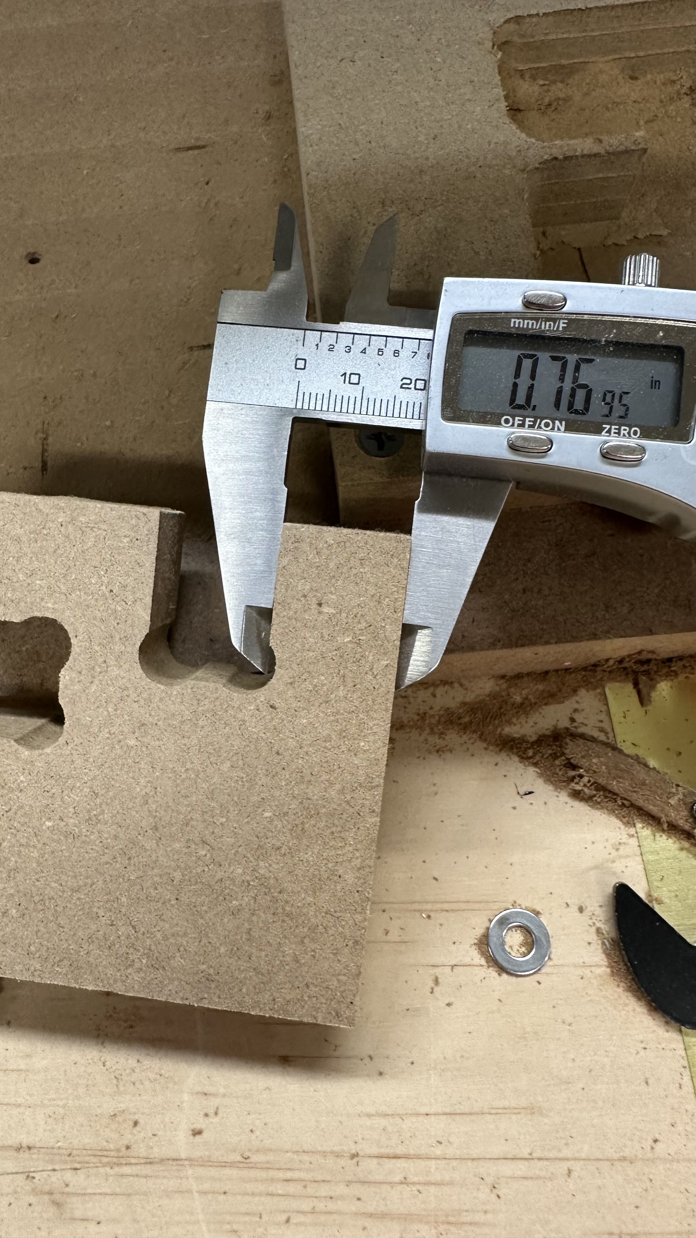 Ran another test cut using my drawing from above, in 3/4" MDF with a SPE Tools W03001 1/4" “O” flute up cut end mill. 60in/min feed rate, .25" depth of cut, 0.05" full-thickness (.75" ) finishing pass and about 14000 RPM.