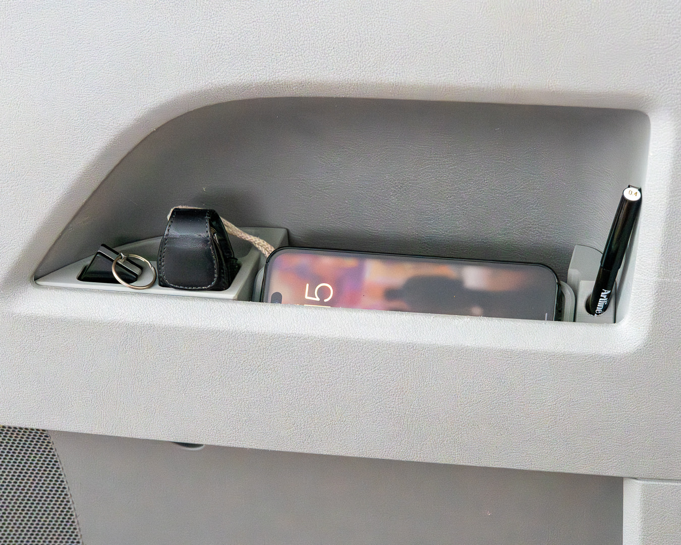 And fully loaded - the phone tray is completely free to pivot or just pull out - there’s plenty of room for wallet, sunglasses, and rubbish tip vouchers behind and under it and access is really simple.