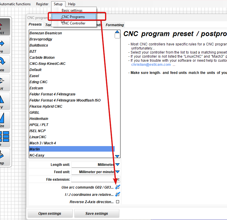 Zac, notice in the graphic that Mike has “Marlin” selected for his CNC program preset. What selection do you have there?