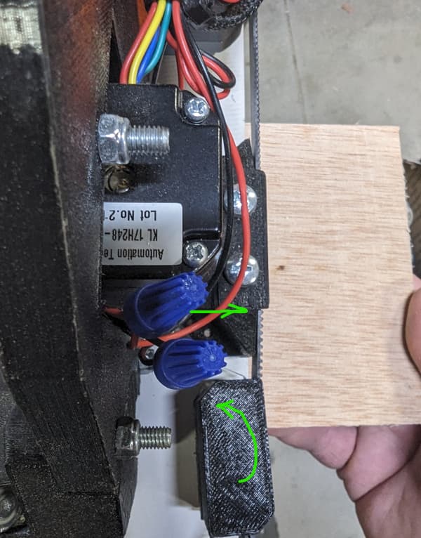 I added a couple of green arrows although it’s easy enough to see that the belt block had rotated a bit under the (over) tension of the belt, and then it created this issue where the lowrider’s Y1 motor /pulleys now sit proud of the belt rather than being perfectly in line with it.
