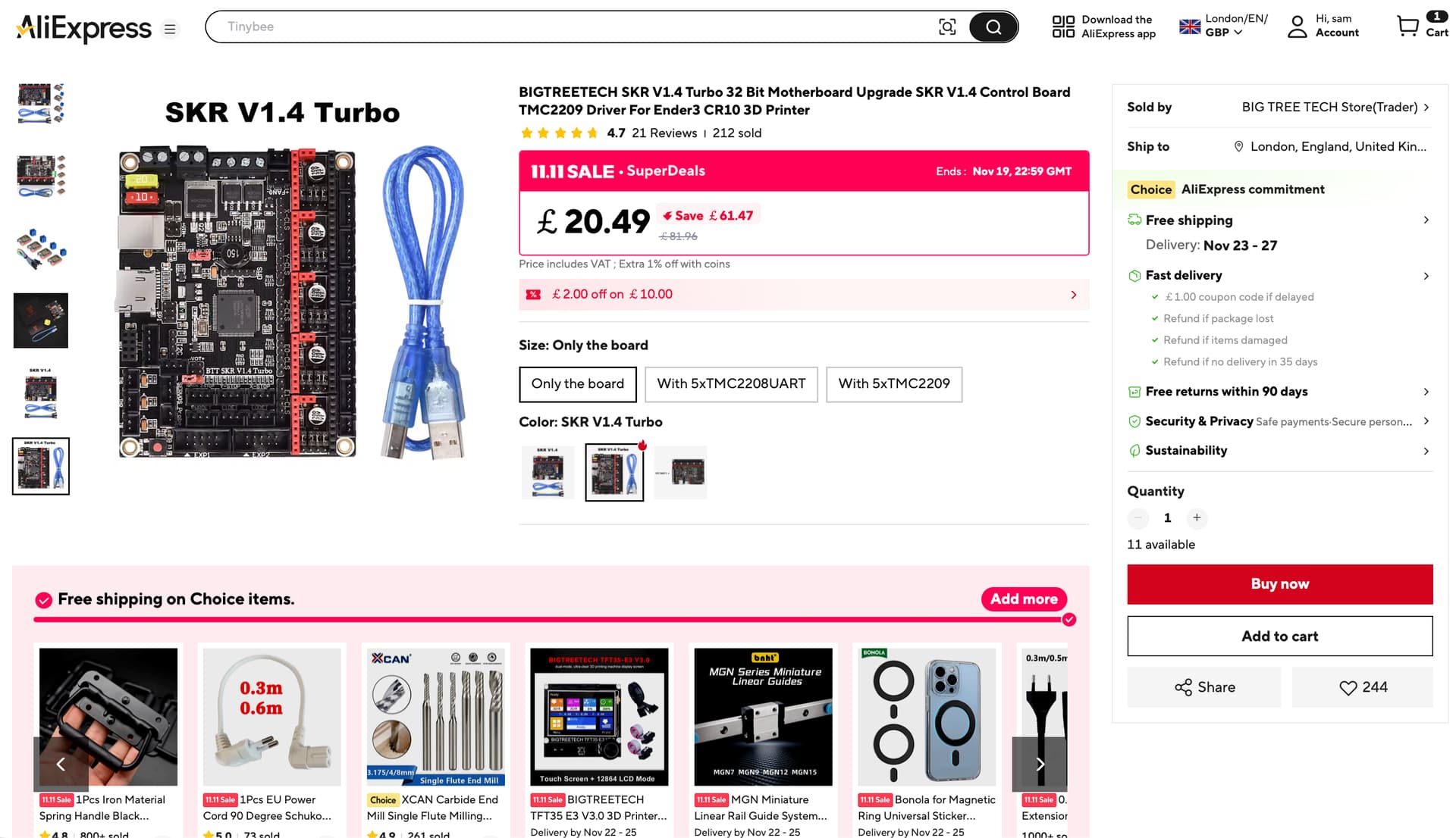 I got my SKR turbo on aliexpress. if you make good use of the coupons you can get some stinking deals. It’s now the 11 11 sale so SKR is even cheaper.