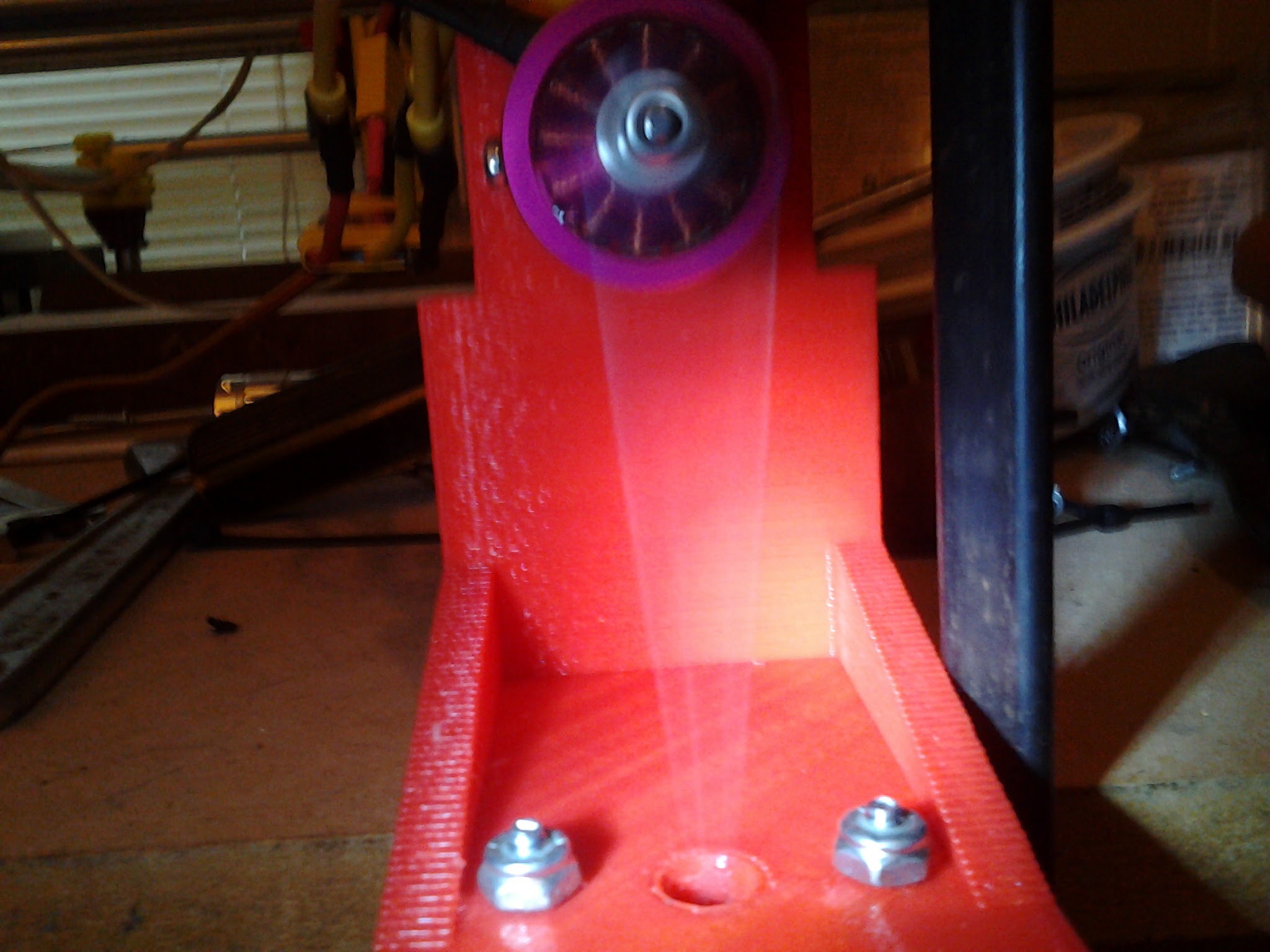 I do like the idea of the guide bearings though. Getting additional motor to first bearing distance is just a matter of drawing the design taller (my printer could do 220mm height if needed, and my latest design with more spacing is just 90mm tall). Having those bearings does help keep the needle in a more constant cutting position, vs having that wagging wire entering the mig tip which results in more of a side to side needle path. I have observed this side-side motion does lead to less perfect cuts… cuts are square when inline with the plane of the flywheel, but tapered on lines that are perpendicular to the flywheel.
