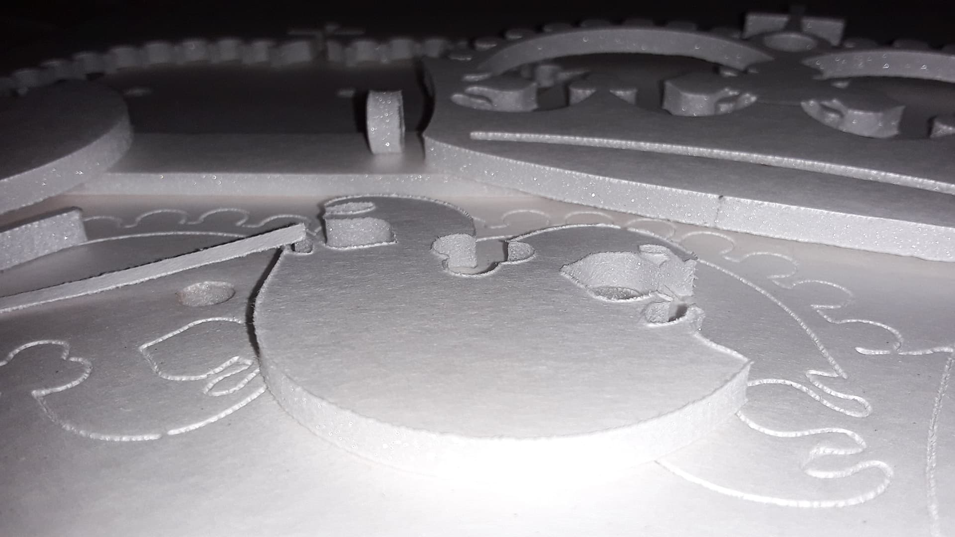 I started off using a bit too much guide bearing spacing (~1.0mm), which resulted in relatively rough cuts regardless of travel direction. Narrowing that to 0.8mm seems like the ideal number… I observed the same rotational patterns as Jason, and have much cleaner cuts. I also started off with just a 3x6x3mm plain bearing on the crank, but the needle fell off after some cutting on 2 occasions. The second time the wire got hung on the bearing bolt, and created enough heat to melt the flyweel, sending the bearing and bolt flying across my garage, lol! After that I decided the 3x10x3 slotted bearing would be well worth the added weight. I was using a bolt and 2 nuts to counterbalance, and only had enough room on my design to fit 3 nuts. There was still an imbalance, but the whole thing ran relatively smooth and quiet with the slotted bearing, and now the needle seems like it’s never going to break or fall off.