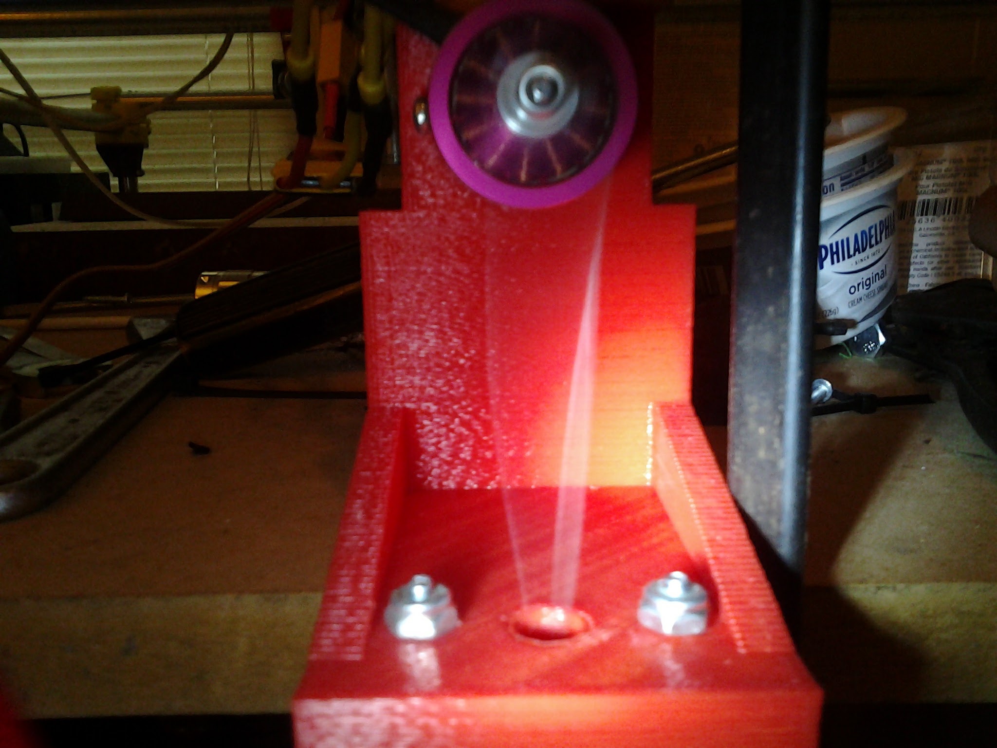 I am now printing a full redrawn cutter mount that has 55mm spacing between the motor shaft and the first bearings. This appears close to what Jason did on his, and it is more than double the spacing I had with my original remixed design. Doing the maths, assuming a 14mm stroke, the old design deflected the wire about 30degrees. My new design bends the wire less than 15degrees, and just feeling the wire out with my hands it seems 55mm won’t result in major buckling/asymmetry issues.