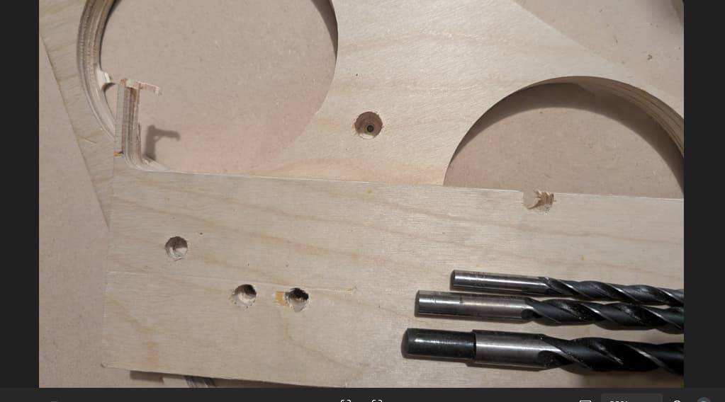 Next I enlarged the holes to the desired final size using a 1/4" drill bit in the 1/4" collet that came with my Vevor 0700C router. This is where things went horribly awry…