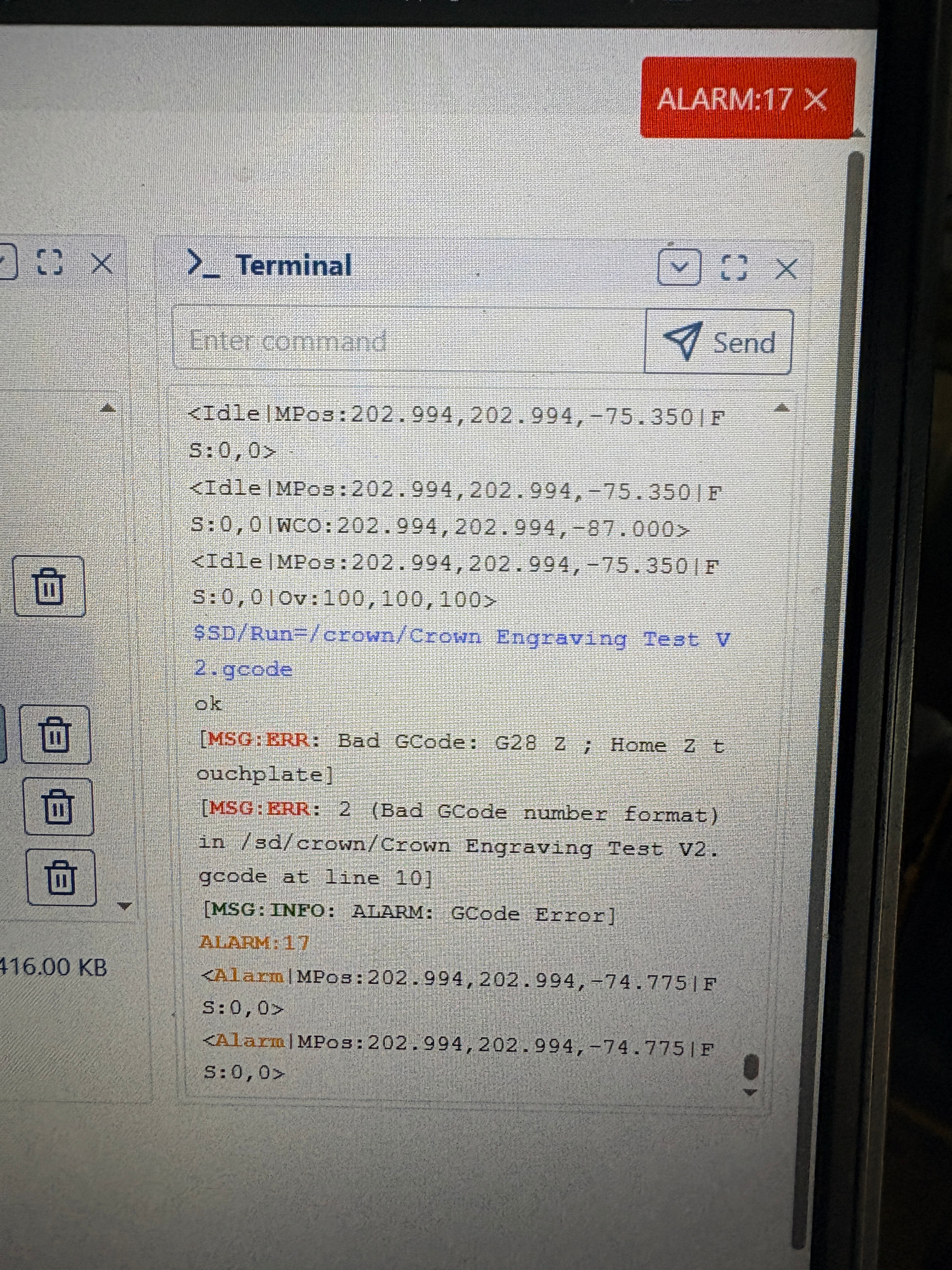 Hey everyone. I just finished building and dialing in my LowRider V4. I am trying to run the crown file i exported from EstlCAM and put in the Jackpot 3 board with the micro SD card. Everytime i hit run/play on the file in FluidNC I get an Error 17 and nothing moves. It says gcode error. Anyone know what Error 17 means and what i might be doing wrong?