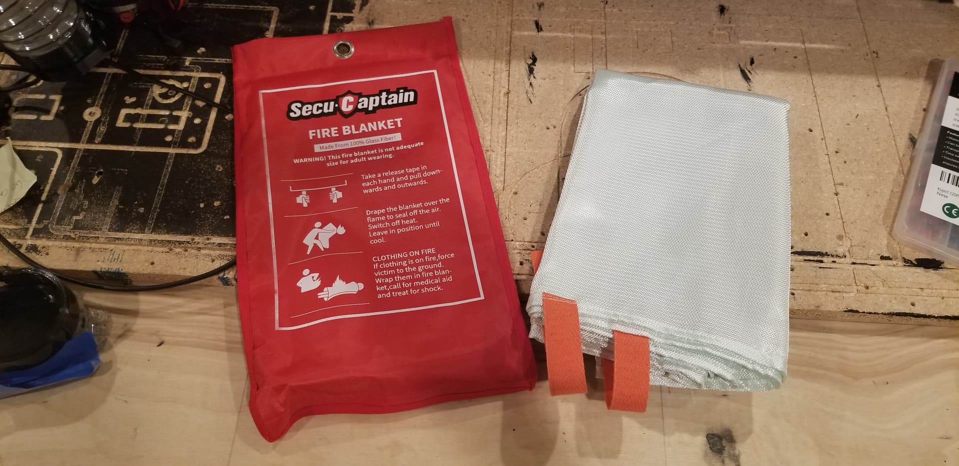 So I went out on the way to work this morning and brought 2 dry chemical fire extinguishers and 2 fire blankets. (as an aside the fire blankets make a great welding blanket!!)
