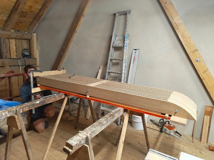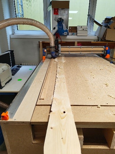 here are some impressions from a student project. They made a pair of downhill skis using the LR4 for the template for cutting the ski base and bending the steel ski edge. The core is made of ash and the LR4 was used to taper the thickness towards the tip and tail. And also the press mold was milled.