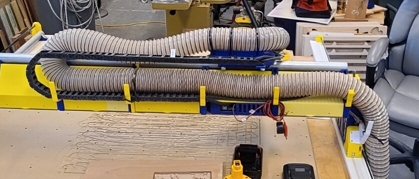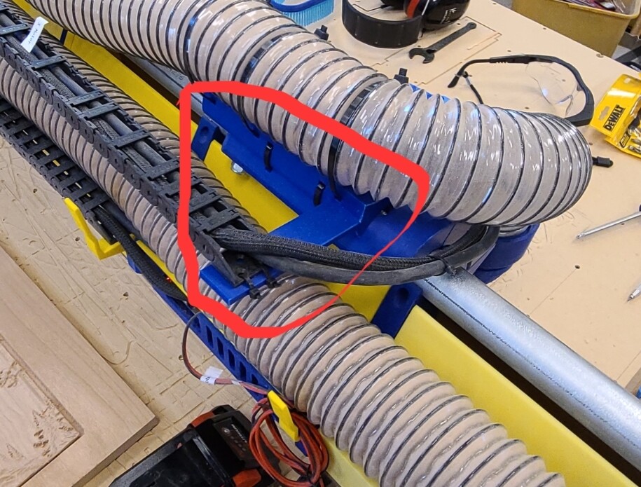 I am somewhat familiar with onshape. We have a love hate relationship. The only cable coming out of my Gantry is a single power cable I have everything else housed within the Gantry. So just have to manage the hose and One power cable and I am going to try and manage those with another drag chain. I am using 2.5 hose for the whole system as well so your system sounds perfect. I am not sure I will need the coupler as I have a Y split with a seperate clean up hose attached at the side of the table so that I can also not run the dust collection and do it manually if I am cutting something that I need to remove the dust shoe for some reason.