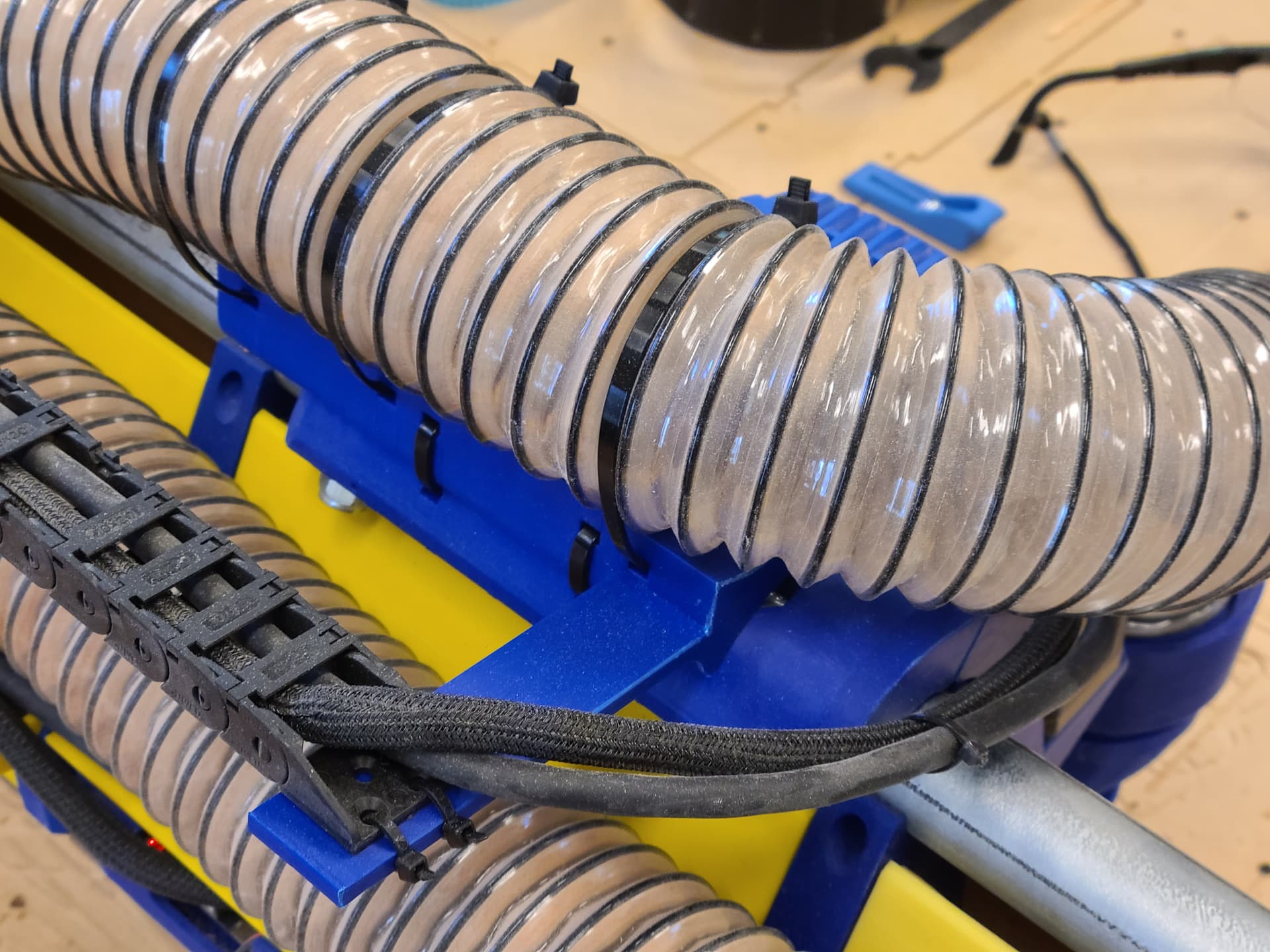 Finally, I have slightly modified the braces that hold the vac hose in place. They also provide a location to attach the drag chain.