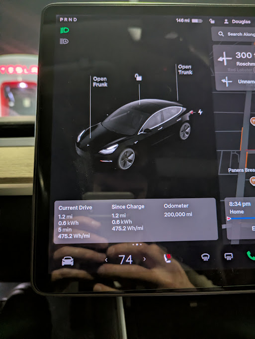 My 2018 model 3 and I reached 200k miles on the way back from visiting family. Week long road trips out west, car camping in parking lots of ski resorts in Michigan and West Virginia in sub zero (F) weather, to mountain bike trips out east; its been a fun adventure. And the car seems set to go for 200K more no problem. Original brakes, battery, motors, and drivetrain. No oil or other fluid changes. No gas stops and about $1,500 per year saved by using electricity instead of gas. On the fifth set of tires. Wahoo for Lula!