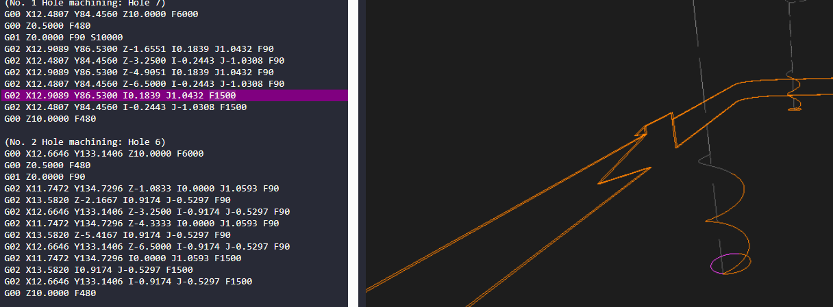 Observing that milling holes quickly whips around at full feedrate during flat segments, is this normal and expected? Or, would you expect smoother motion through out the overall hole plunge? e.g. making 5.3mm holes with 1/8" bit. I’ve been using the same tool settings for contour cuts and holes.