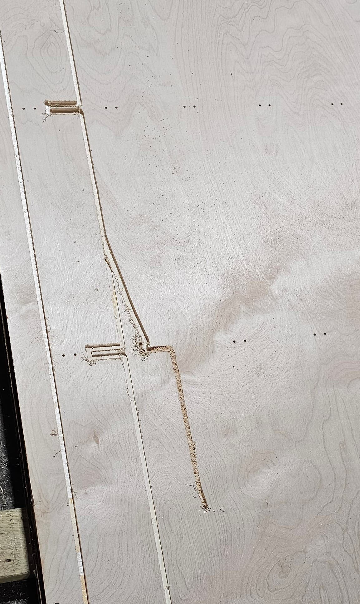 I’m using a 1/4” straight flute cutter (too impatient to wait on the upcut bits) cutting in birch plywood.