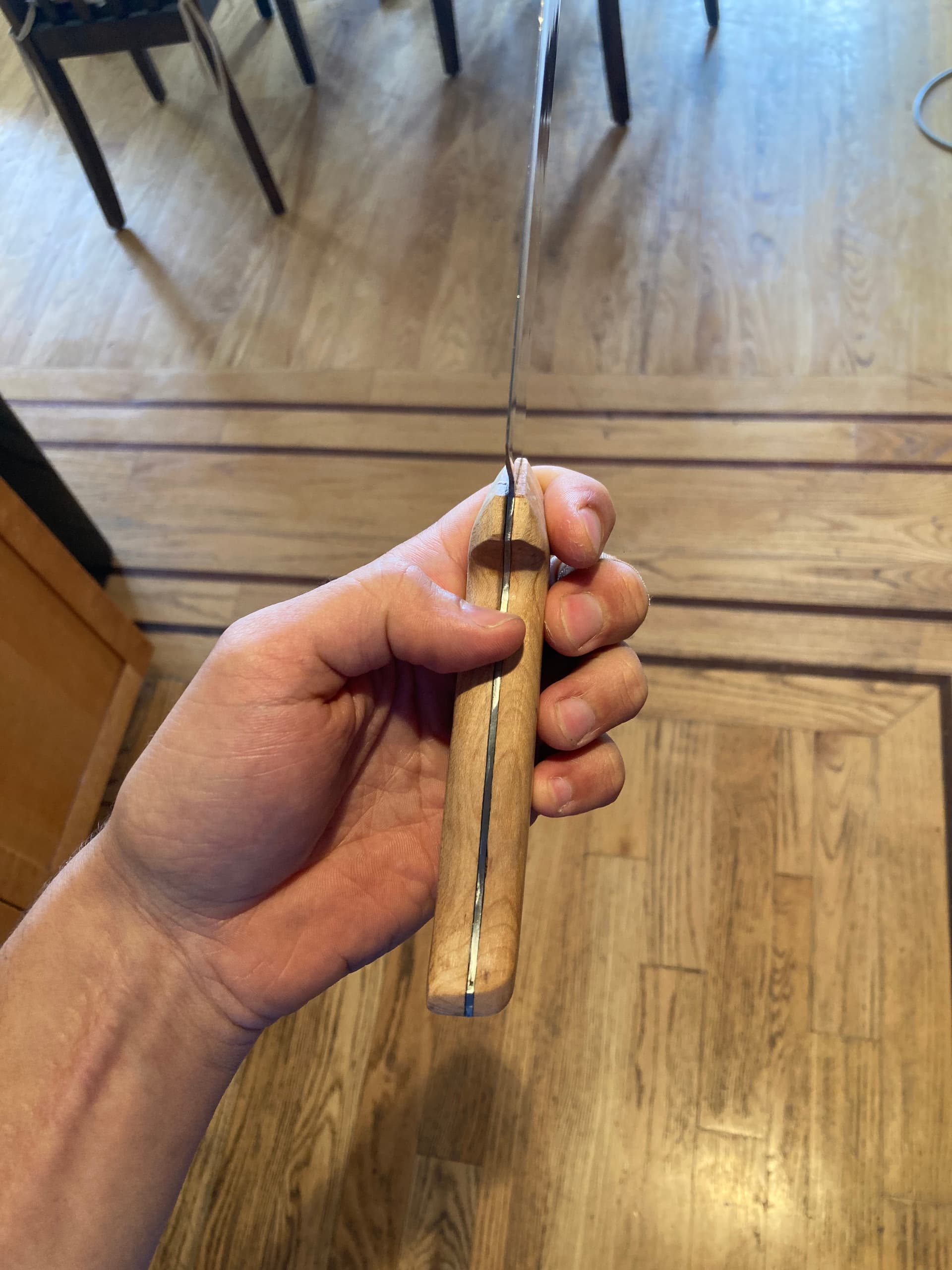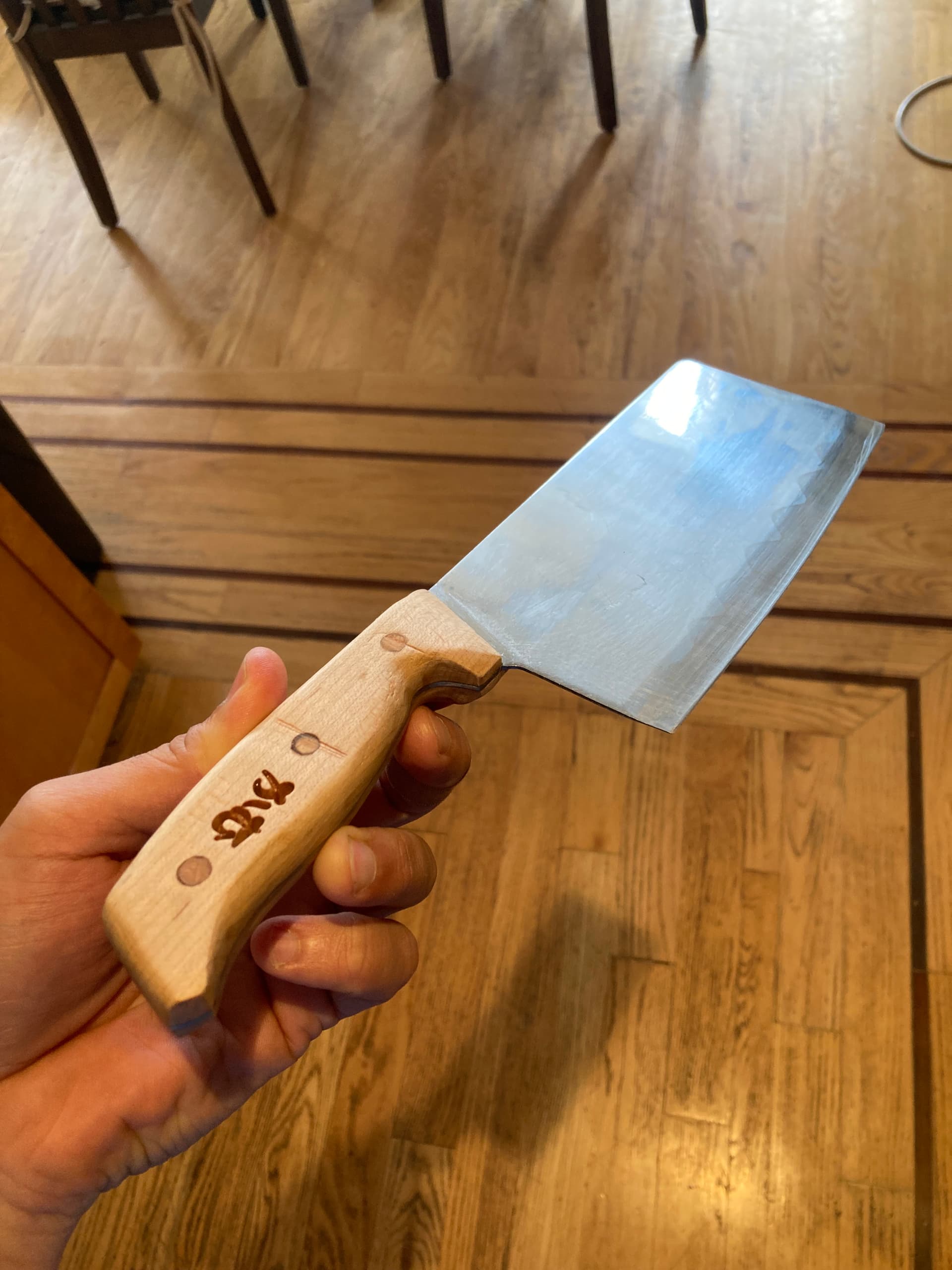 Finished cleaver handle, pretty stoked on it for the most part! Definitely had to be sanded down quite a bit from the rough 3D contour pass, but even the rough pass made shaping it a lot easier. I could probably get some more, finer passes before the machine drifts noticeably.