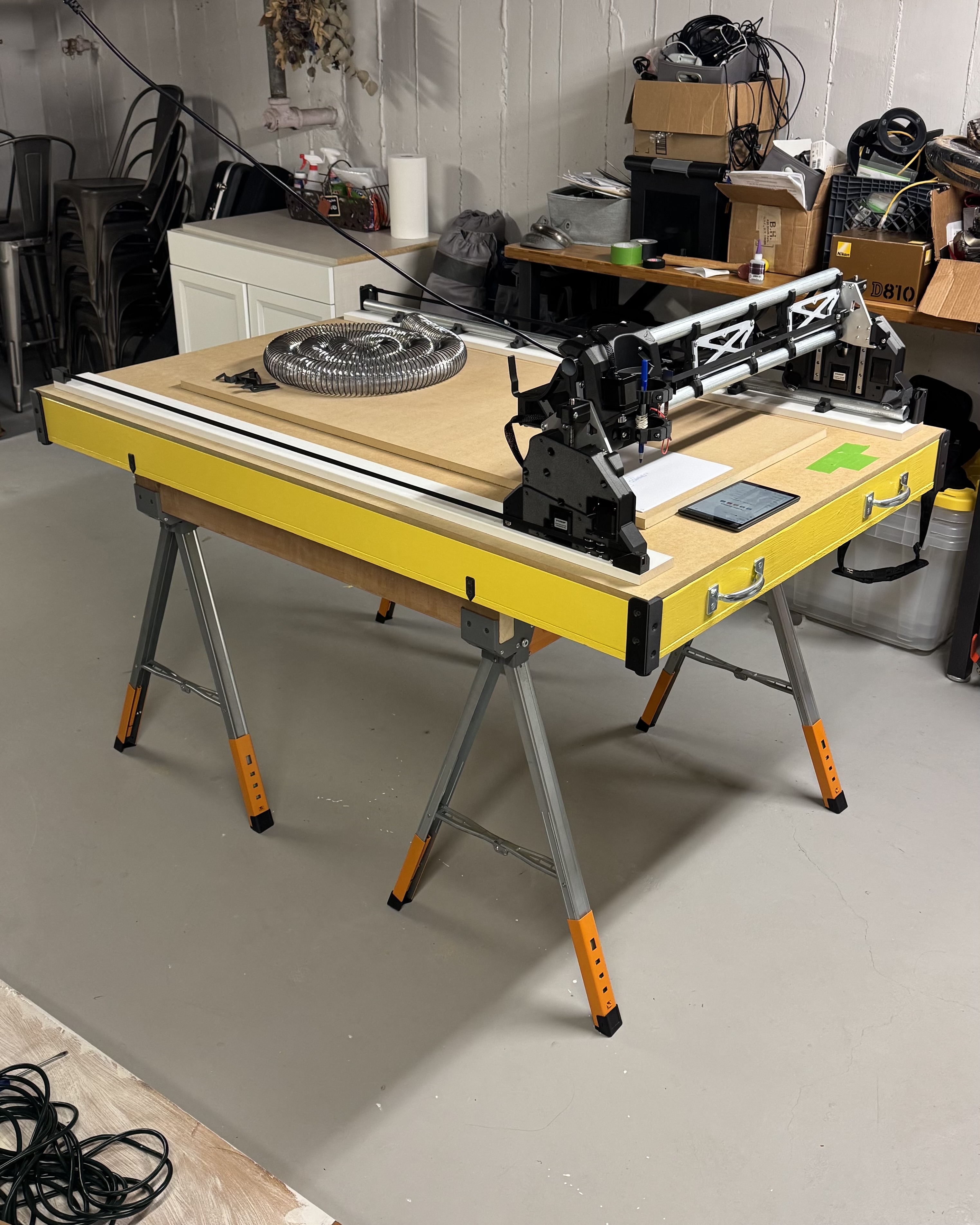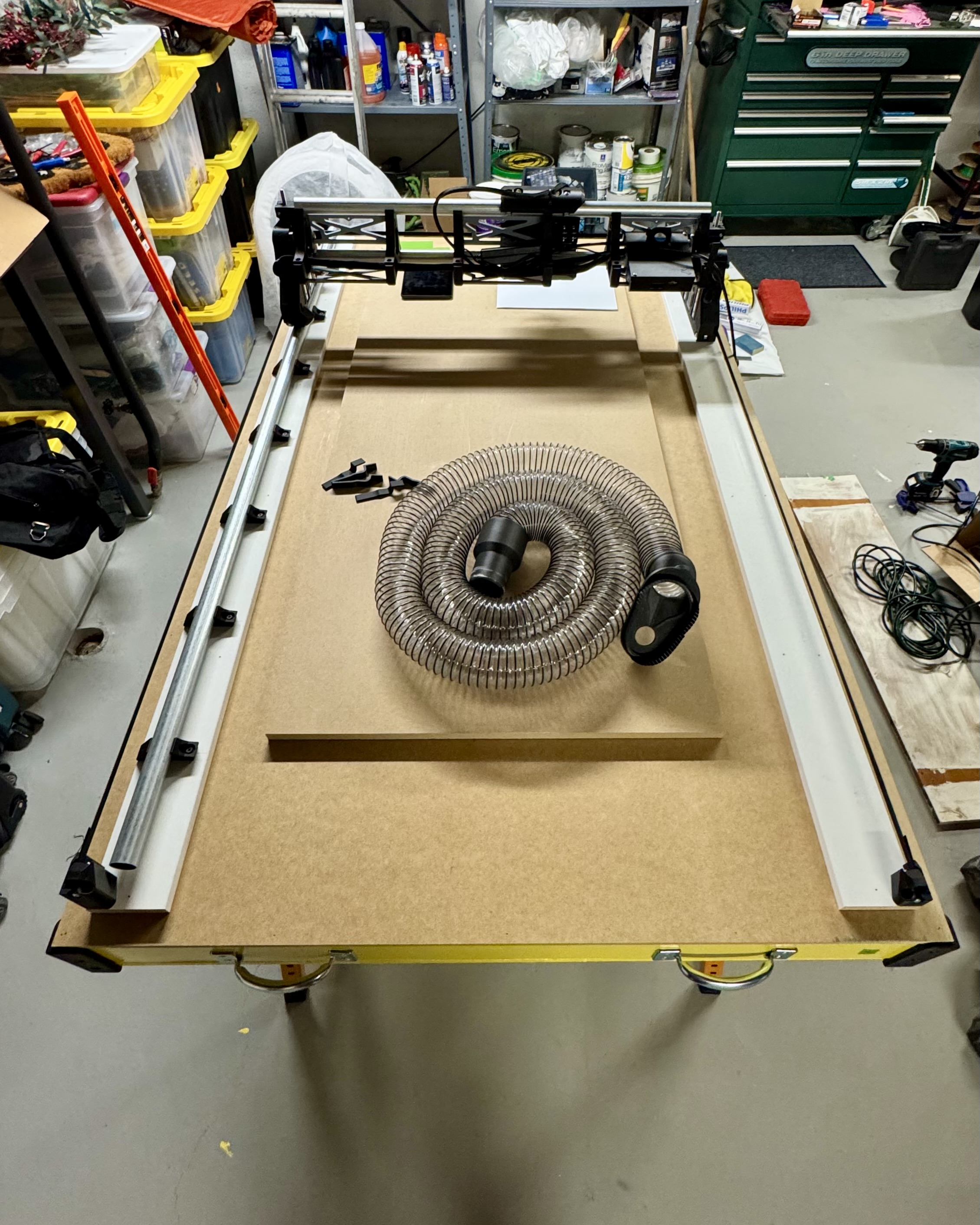 I’m basically all ready to cut, still trying to figure out to ground my dust collection tube to avoid static build up and would love some suggestions on what people are doing. Hopefully more to come soon!