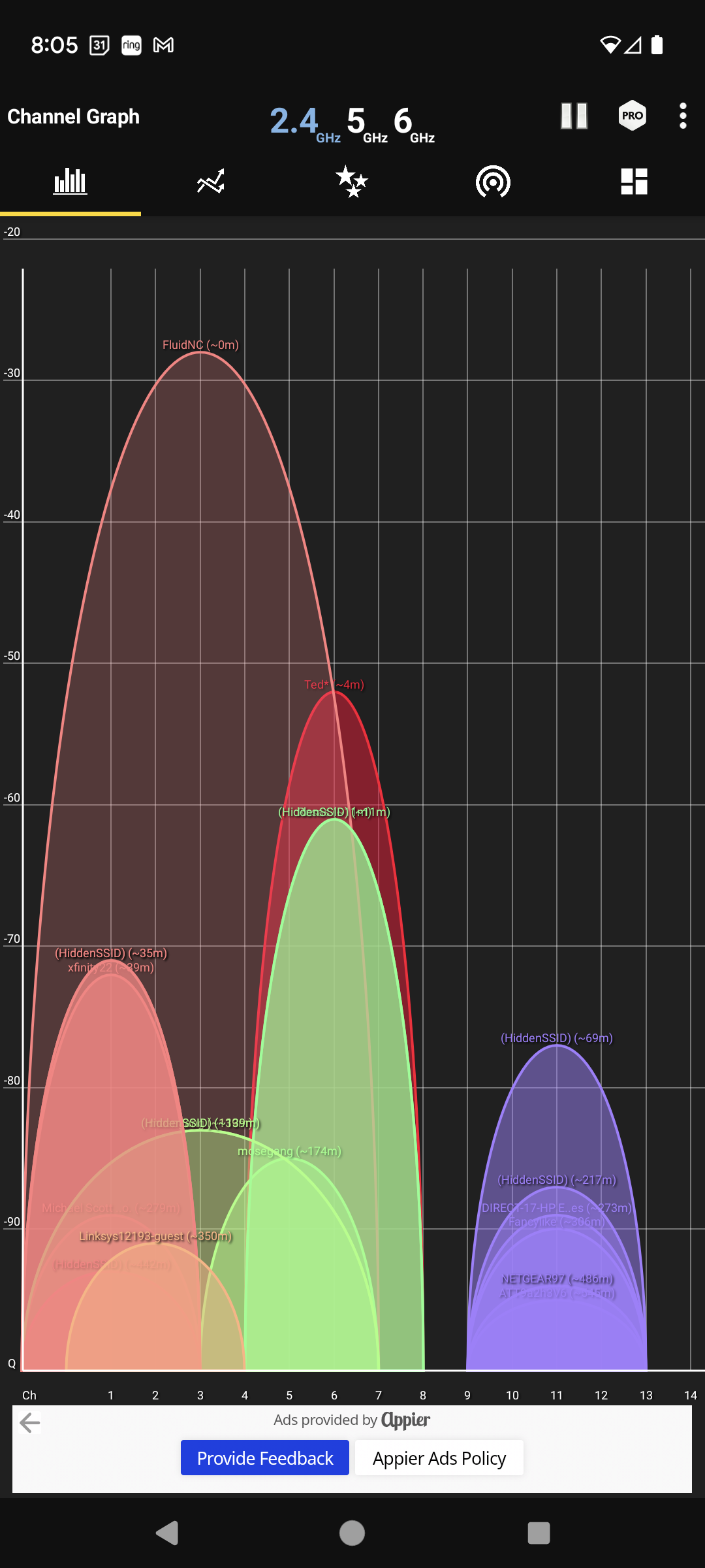 A cell phone or wifi enabled computer can run free wifi analyzer apps, like I showed above that would really help here. I don’t think this is a MAC thing anymore I am leaning routers now.