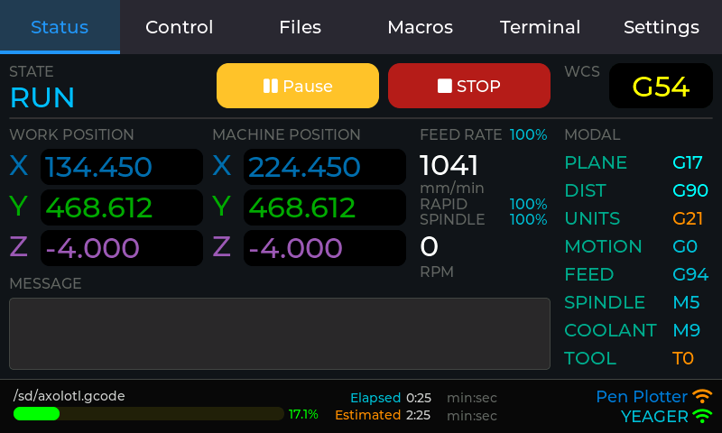 - Pause/Resume and Stop button - I’m questioning including the stop button. It results in a DOOR status which you can resume from, so it effectively feels like pause and stop do the same thing. Thoughts?