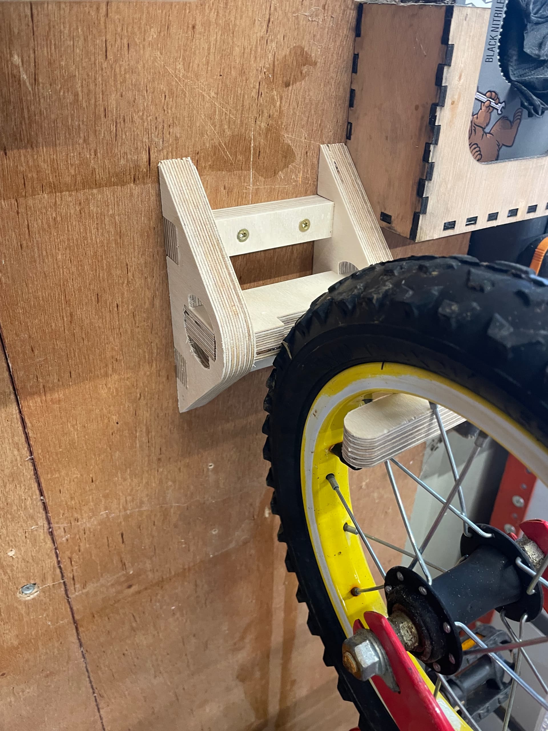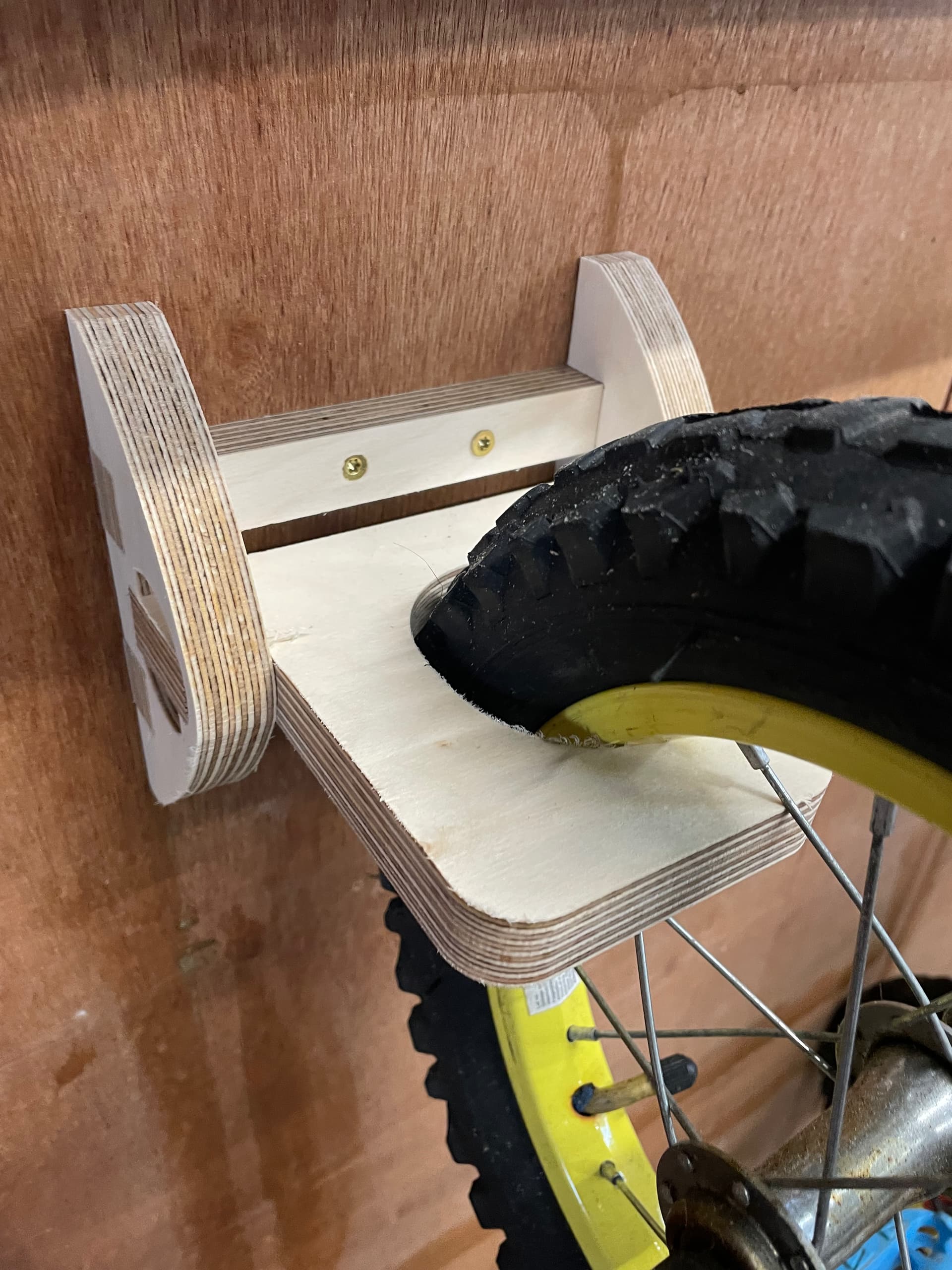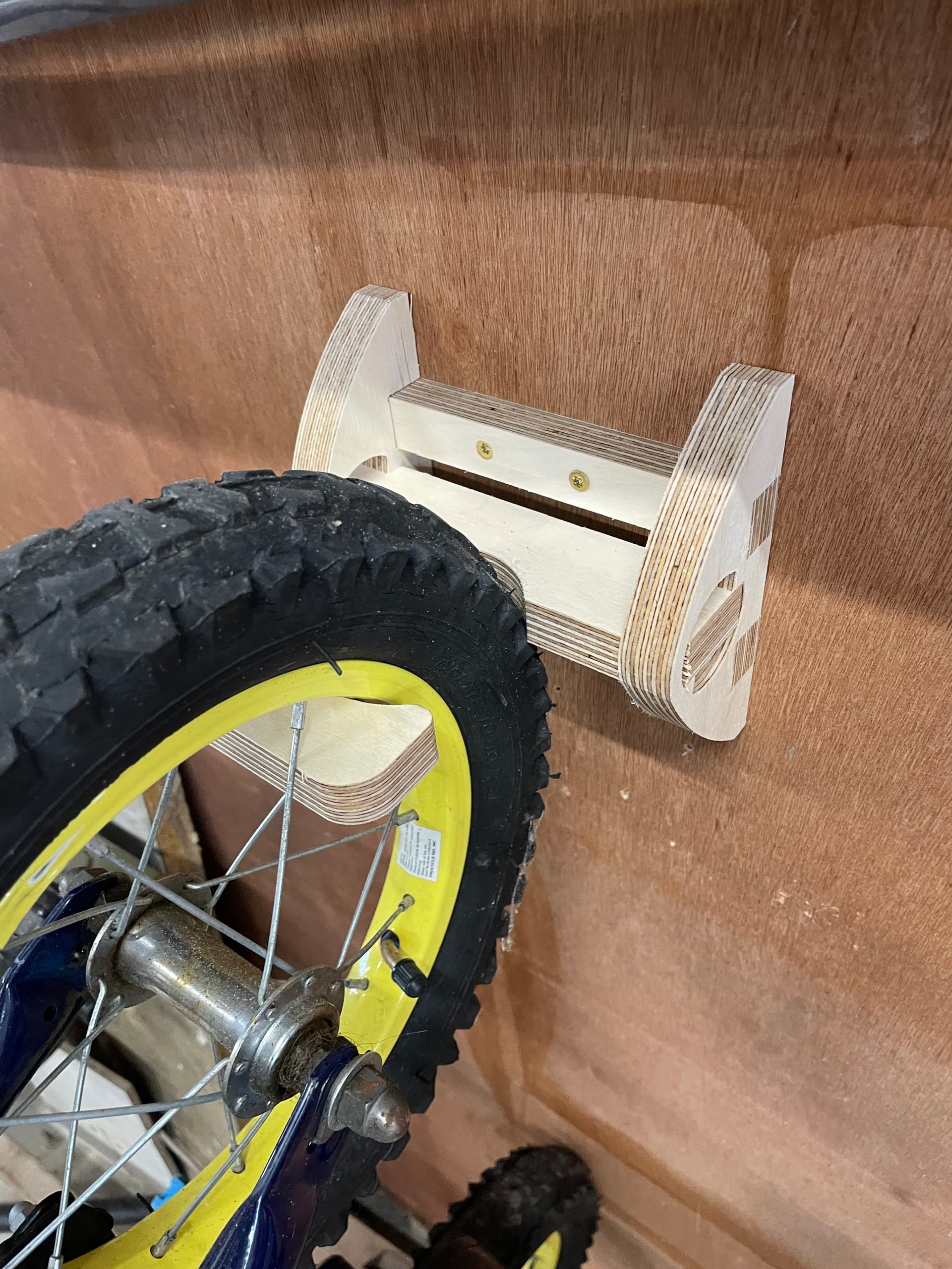 Reusing the captured ring hinge again I made some bike wall storage hooks. A 15 minute cut each. I don’t like the way the hook flexes so I both shortened it and also thicker it a bit to try and compensate. Got a couple more bikes to hang so there’s nothing wasted.