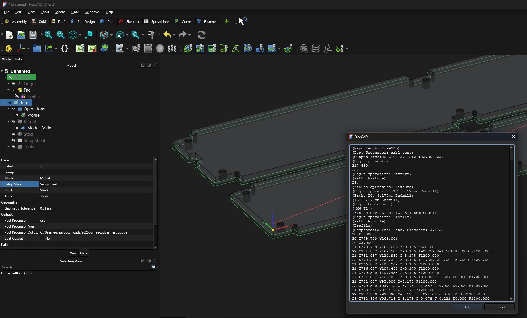 I had put a link to an awesome youtube for freecad cam in here somewhere, let me see if I can find it.