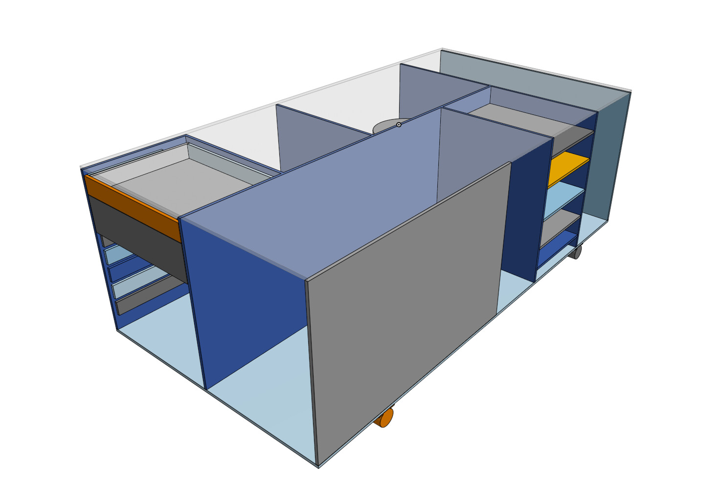 For the most part my base is always material storage, vac storage, last time I had one pull out drawer, I think 3-4 would be nice, I will be using some sort of locking/folding wheel."