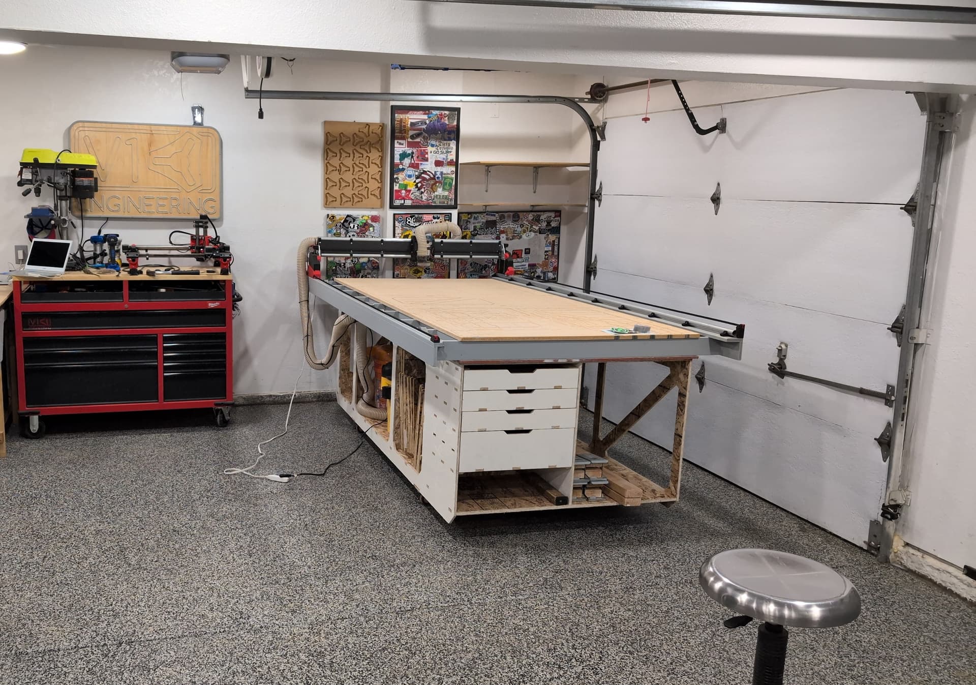 I have recently built (technically I’m still building, I’m currently swapping the 3d printed plates over to the 1/4 MDF cut ones) a LR4 for my first CNC machine. It’s friggin sweet. I also built the $200 non-cnc table (for more like $80, I had a lot of 4” and 6” baseboards leftover from my house build so I mostly used those) and it’s sitting on sawhorses. I’d love to put it on a workstation like this that utilizes the CNC to create it. But I have no idea how to get from Onsuite to OSB. I’d happily build one.