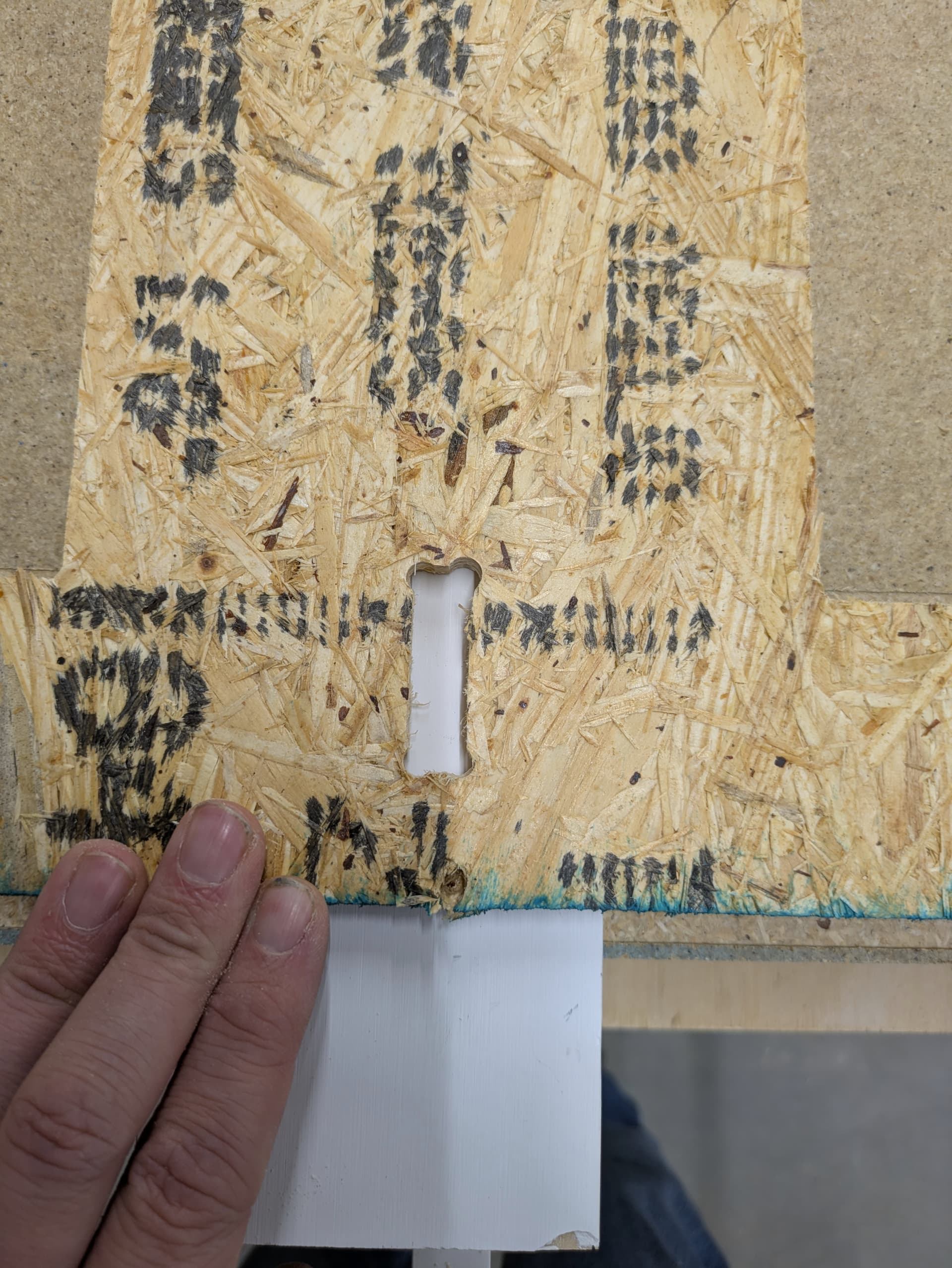 So first the good news - I didn’t blow up an end mill yet and I have something that almost resembles a finished part, as long as you don’t look at the far end. I did quite a few test cuts at the other end of this sheet and then let the piece finish. The ends didn’t quite line up (you can see the uncut factory edge closest to the camera) to be cut but it doesn’t matter, this was my first real full size cuts and was all testing.