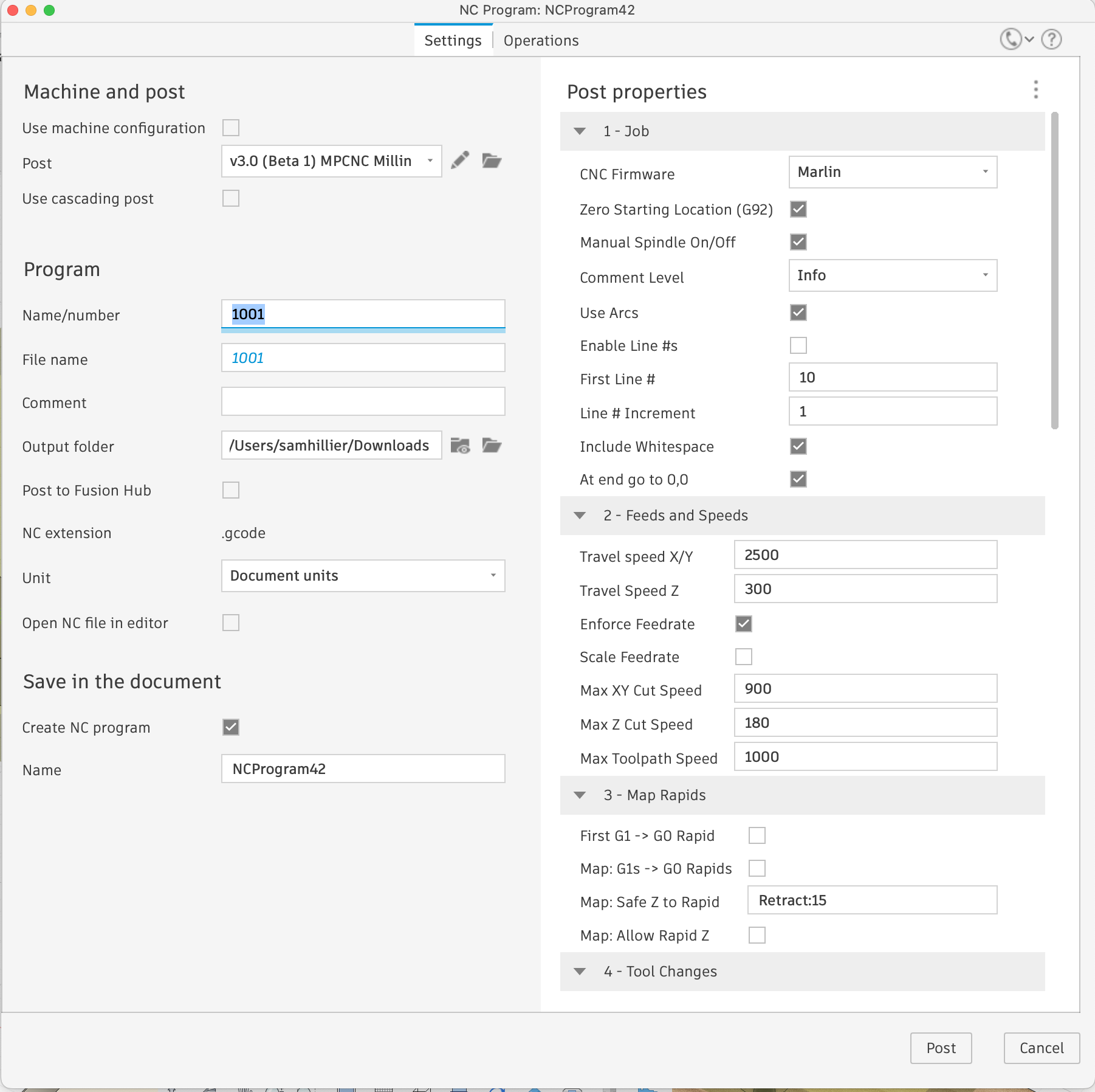 I wrote the post processor during Covid, mostly as a challenge to myself. My early career was as a software engineer building CAD tools. Having used F360 and built an MPCNC I hated the fact that I couldnāt drive the MPCNC effectively from F360.