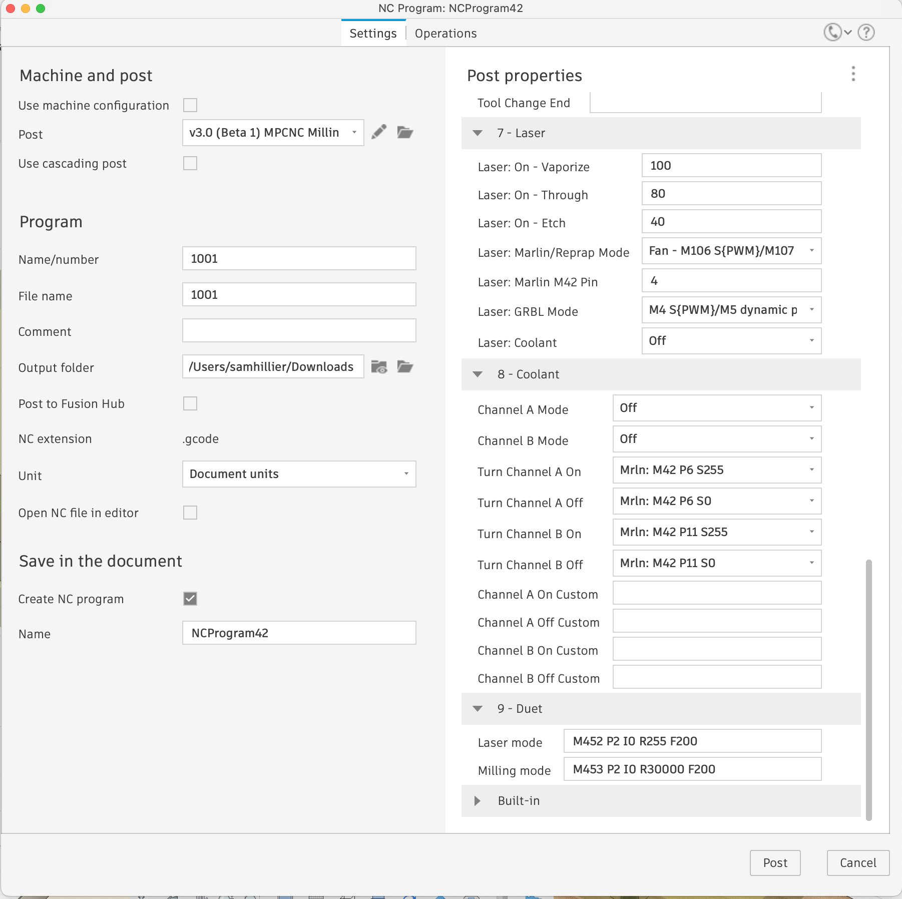 Don / Others, would you mind posting a screenshot of your settings in the Post Processor Output bit? I would love to see what bits youāve changed etc.