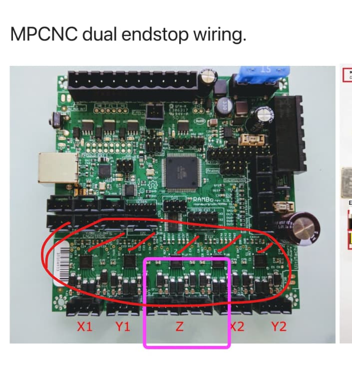 you only have 5 driver chips on that board. (red marks). The z has 2 plugs to the one z driver so you can run two motors for Z, which was a common “upgrade” for a 3d printer, but you won’t use the second z plug on this build. Just leave it open.