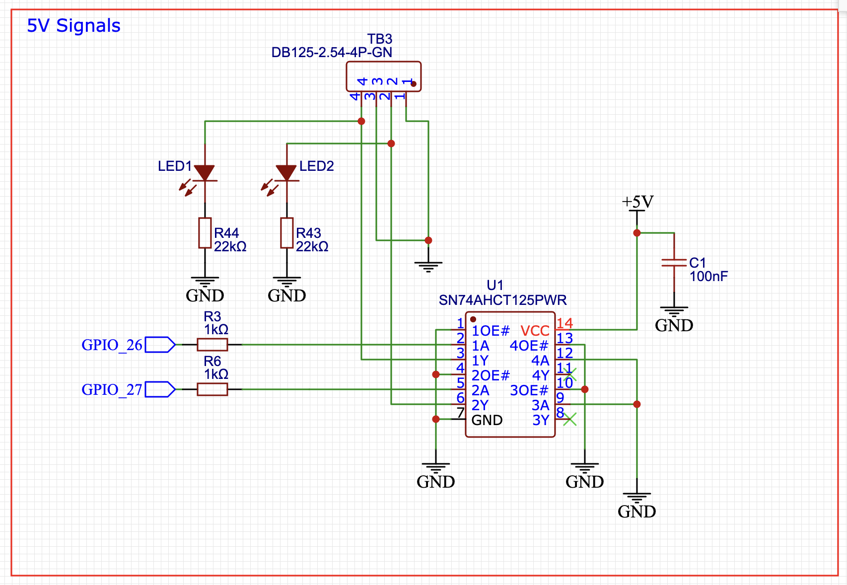 That doesn’t really show how you’ve connected the laser electrically. There’s nothing connected to 26 or 27 in that picure. We want to know where you tied the returns together for the various components.