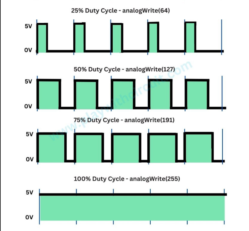 The frequency of the pulses aren’t going to be readable on a voltage meter but the output will only be 5v 80% of the time. You’d need an oscilloscope to view the signal voltage changes